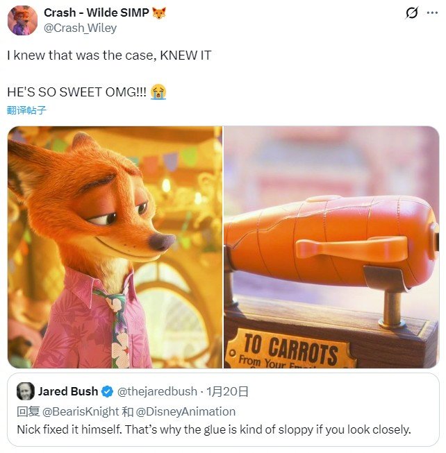疯狂动物城2导演杰拉德最新回复网友,确认说是尼克自己把萝卜笔修好了,“细看能发现 胶水涂痕有点儿粗糙。” 动画师Sandeepan在ins分享了故事板,并透露这段争吵戏份是在制作的最后阶段才完成的:“杰拉德提出了创意点,想用萝卜笔来象征关系的破裂与修复。这段危险的攀岩既是体力上的挑战,也是他们的情感面临巨大考验的具象化。” .疯狂动物城2概念图中的尼克和朱迪 跨年电影愿