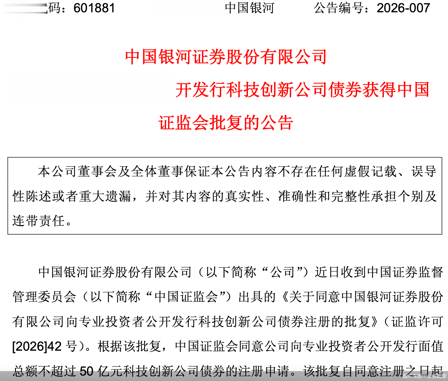 北京商报讯(记者刘宇阳实习生姚榕琰)1月21日,中国银河证券发布公告称,近日收到中国证监会《关于同意中国银河证券股份有限公司向专业投资者公开发行科技创新公司债券注册的批复》。根据该批复,中国证监会同意中国银河证券向专业投资者公开发行面值总额不超过50亿元科技创新公司债券的注册申请。