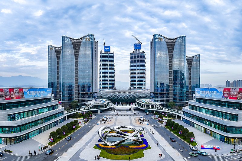 开放是金华最大的特色和优势。去年10月,义乌第六代市场的核心标志项目——全球数贸中心开业。新市场里,“走播”“云展销”等新业态蓬勃兴起,推动商户从传统“坐商”向数字“云商”转型。