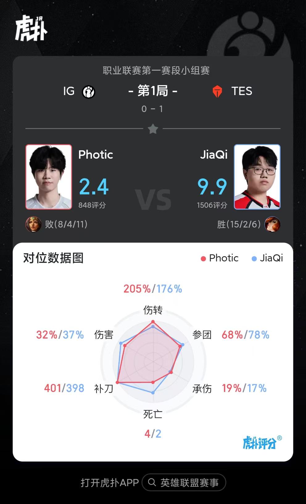 虎扑01月21日讯JiaQi女枪打出15/2/6战绩,拿到TES对阵IG首局比赛MVP