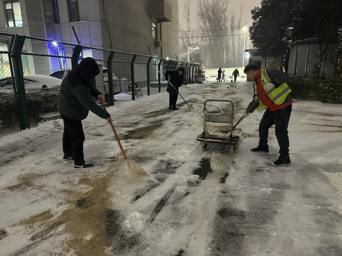后勤部门同步攻坚,通过清扫积雪、铺设防滑垫、播撒融雪剂等举措织密防护网,全体干部员工连夜处置路面结冰隐患,为保障工作扫清障碍。