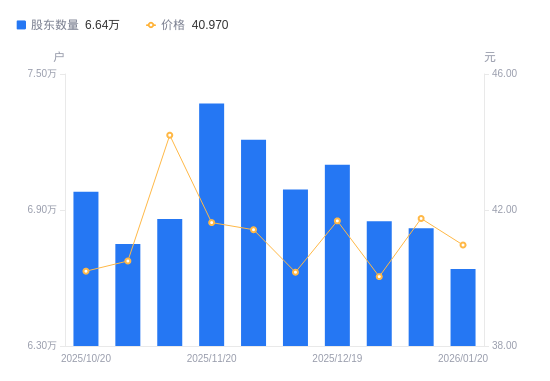 日期A股户数(户)流通A股户均持股数(股)户均持股市值(万元)2026-01-20664006993.2928.652026-01-09682006808.1028.422025-12-31685006778.2827.142025-12-19710006539.6127.262025-12-10699006642.5226.682025-11-28721006439.8426.672025-11-20737006299.9626.232025-11-10686006768.3229.922025-10-31675006878.6227.862025-10-20698006651.9626.74