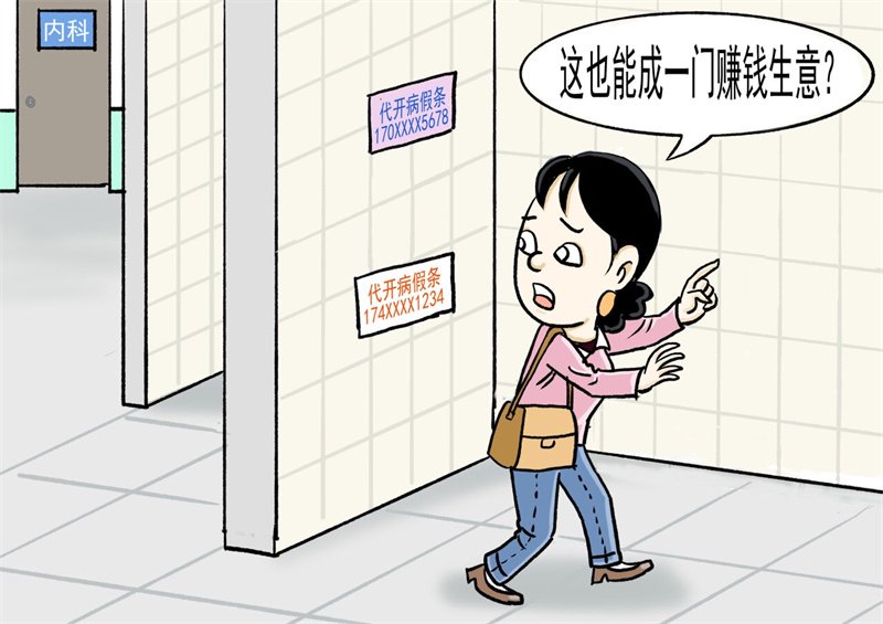 北京一市民去医院看病,发现卫生间墙壁上有不少手写或盖印的“代开病假条+手机号”的小广告。人民日报记者调查发现,开假病假条目的不一,有人为了请假,有人为了满足航空、演出等退改签条款,学生则用来逃避课程、考试。除了在医院角落贴小广告,有的还在线上发布隐蔽信息。(据《人民日报》1月19日报道)