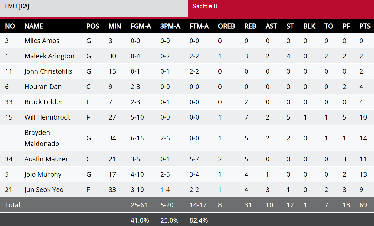 NCAA常规赛:淡厚然4分,西雅图大学战胜洛约拉马利蒙特