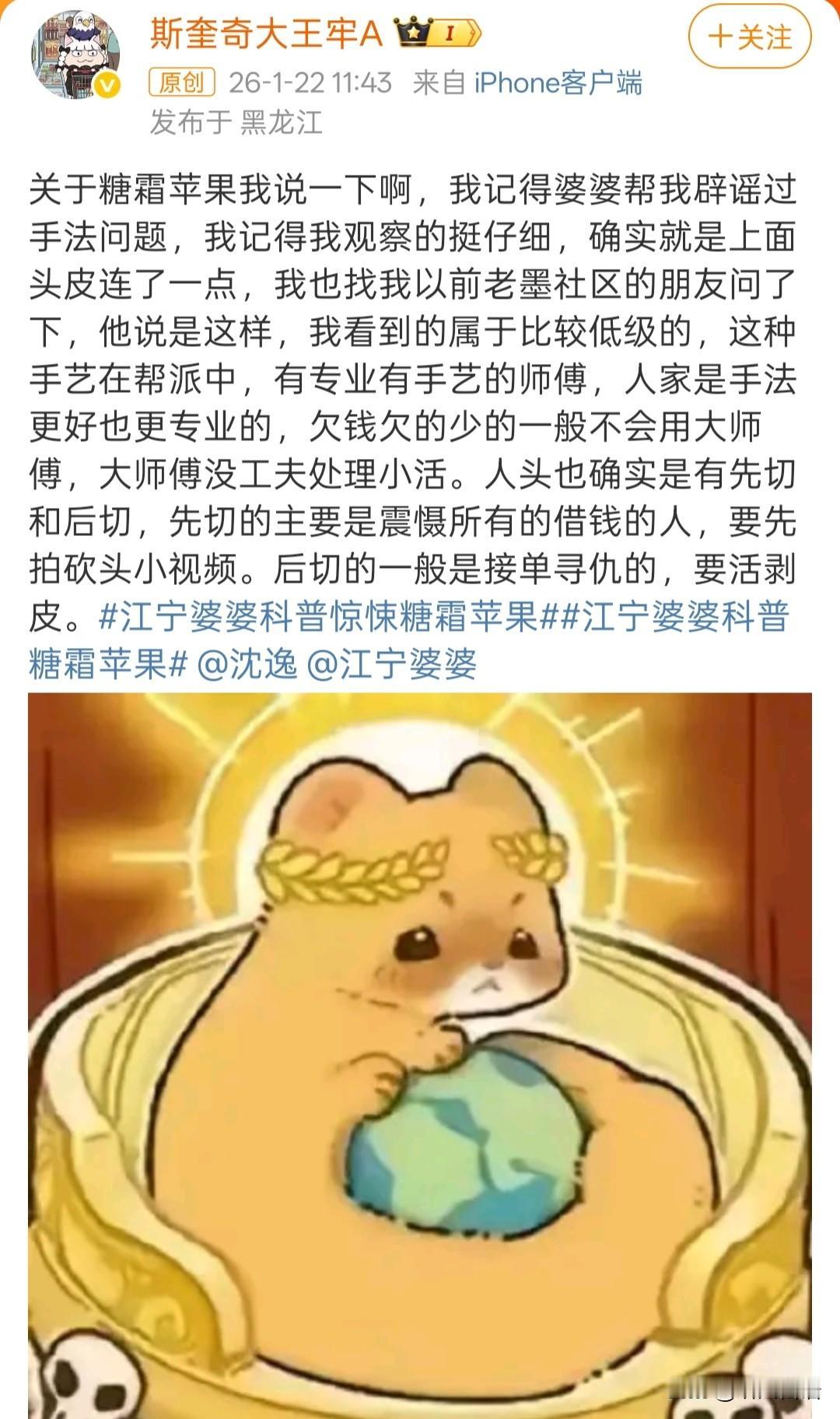 牢A发帖再来一次重拳! 牢A自述江宁婆婆给他辟谣过手法问题,看来糖霜苹果真实存在是毫无疑问的,只是细节和手法上面有点出入。 所以啊,还是要感谢牢A,否则就算过100年,我们也不知道大漂亮美丽的外表下有这么肮脏的阴暗面。当然,我们也希望更多人知道,让大众对漂亮国去魅!