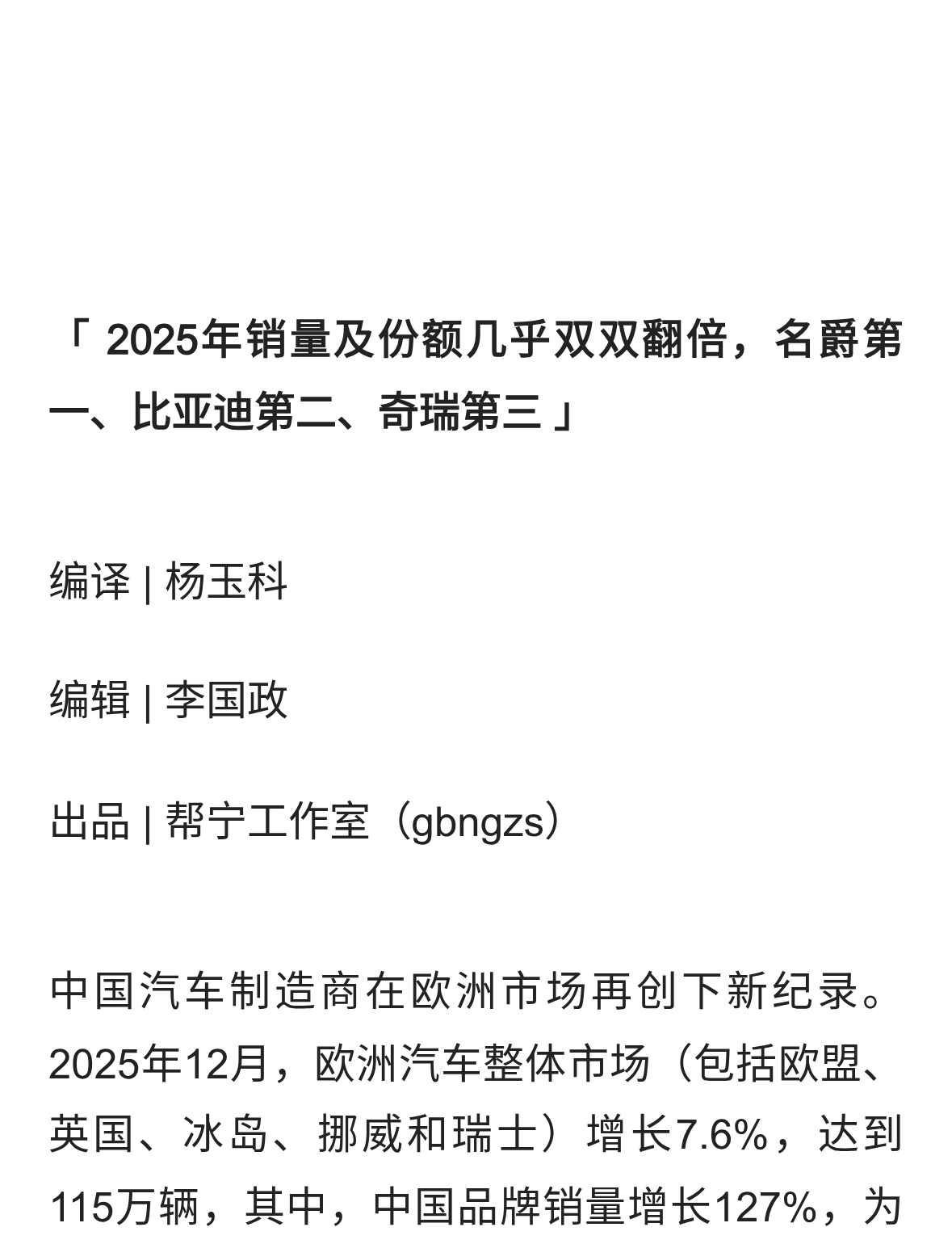 中国汽车在欧单月销量首超10万辆,份额逼近10%
