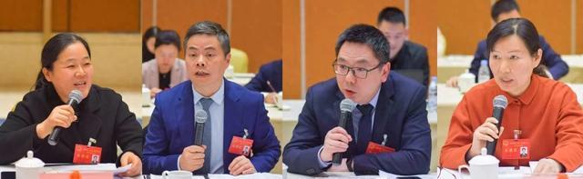 1月21日下午,出席市十七届人大五次会议的王艳、胡传昶、俞挺、张淼(从左往右)等代表认真审议政府工作报告,大家畅所欲言,共商发展大计。