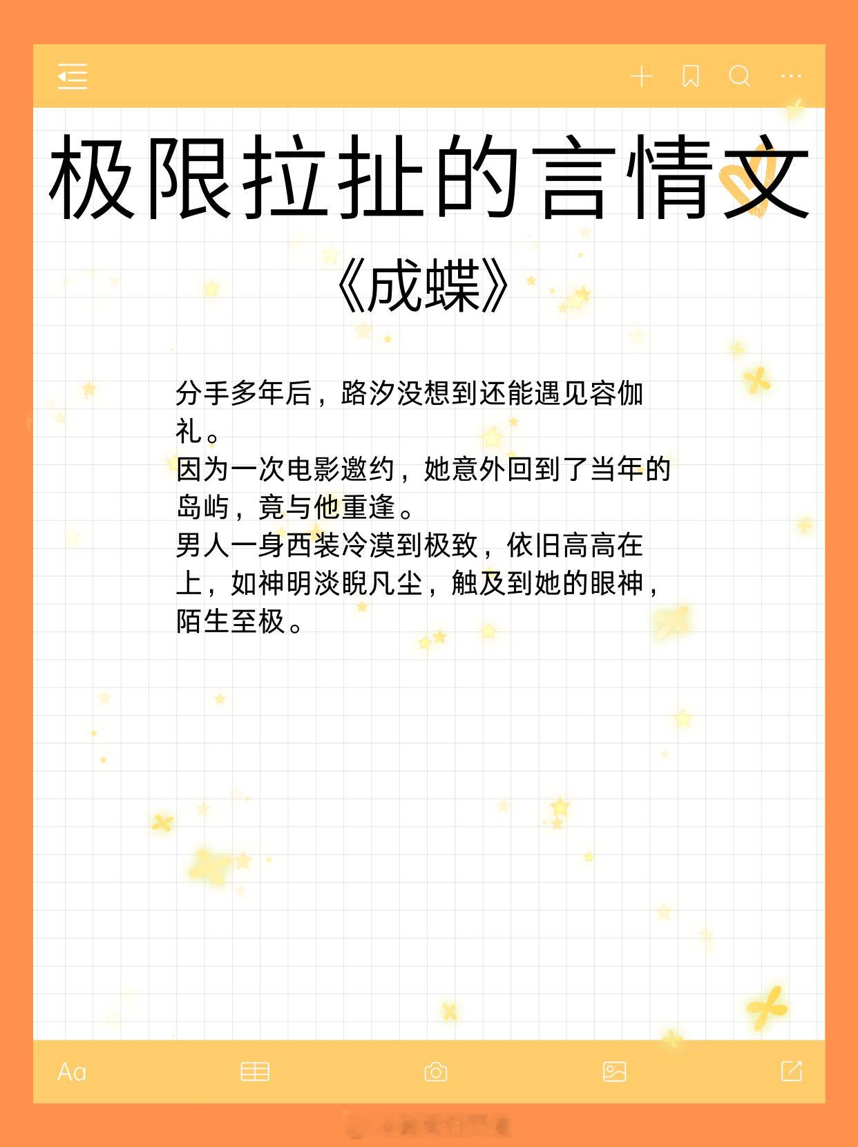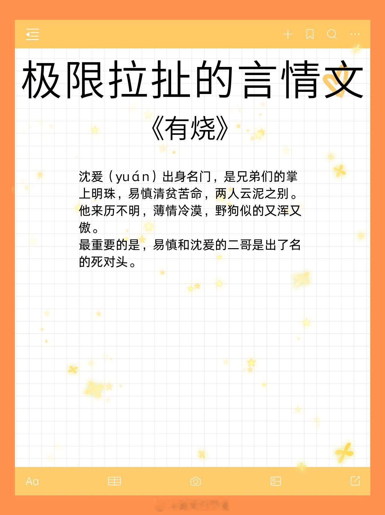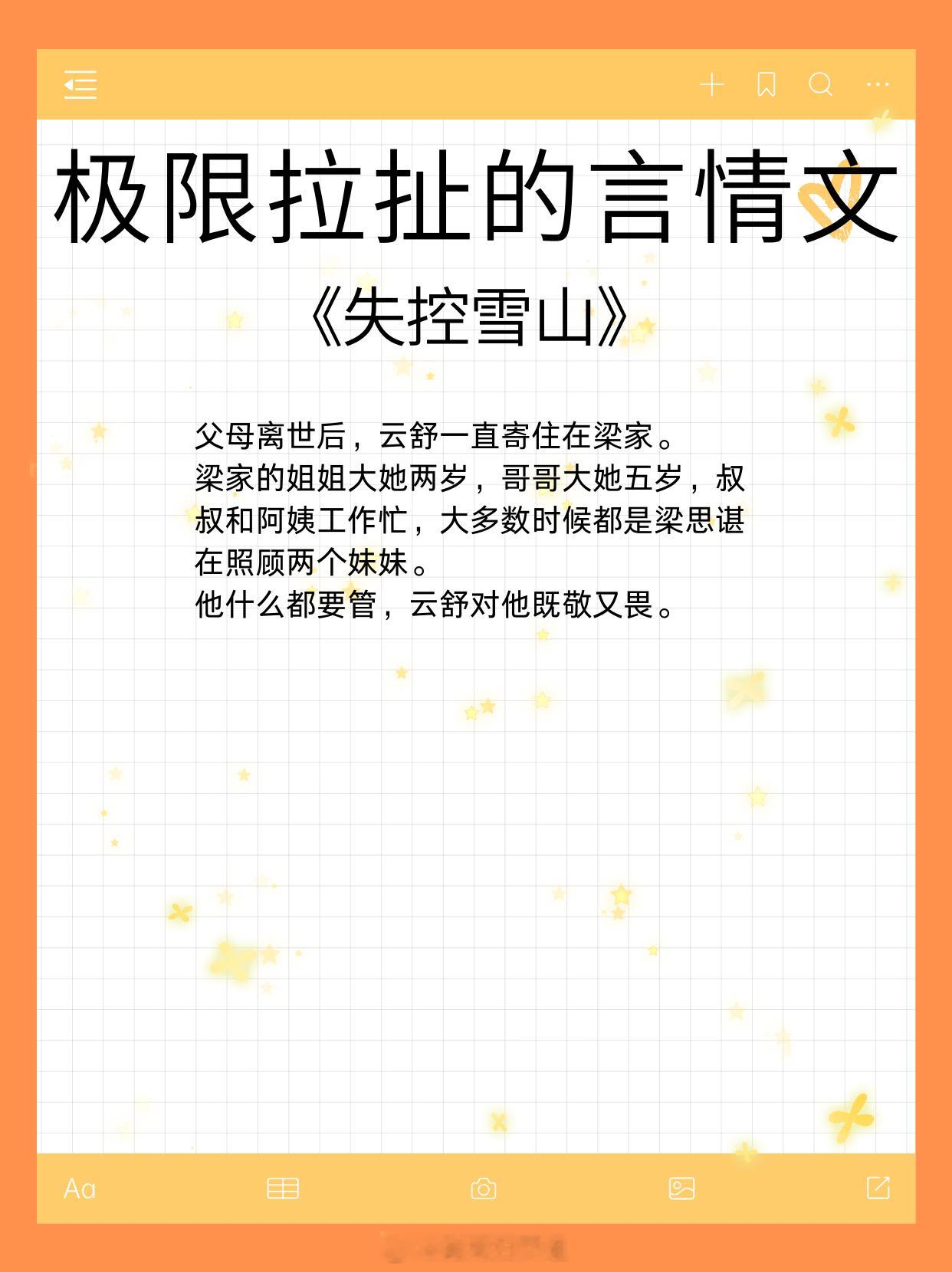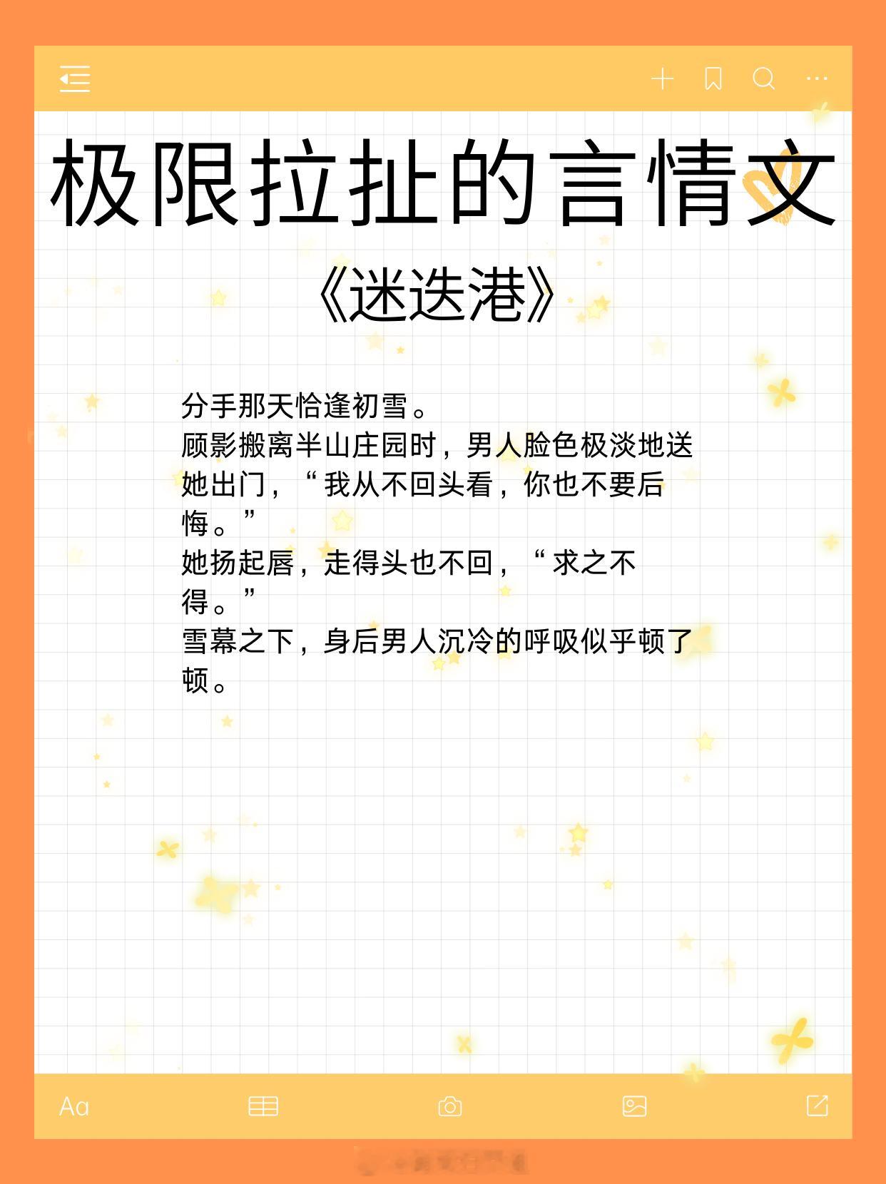 顶级拉扯力的言情文,图谋不得,唯有硬夺。1、《弄娇》作者:嗞咚2、《迷迭港》作者:烧星云3、《摇铃铛》作者:玉寺人4、《暗熟》作者:唯酒5、《有烧》作者:醇白6、《一眼钟情》作者:槐故7、《成蝶》作者:今婳8、《失控雪山》作者:北途川9、《以过客之名》作者:轻叙网文界的诸神之战 兜兜转转还是这些小说好看