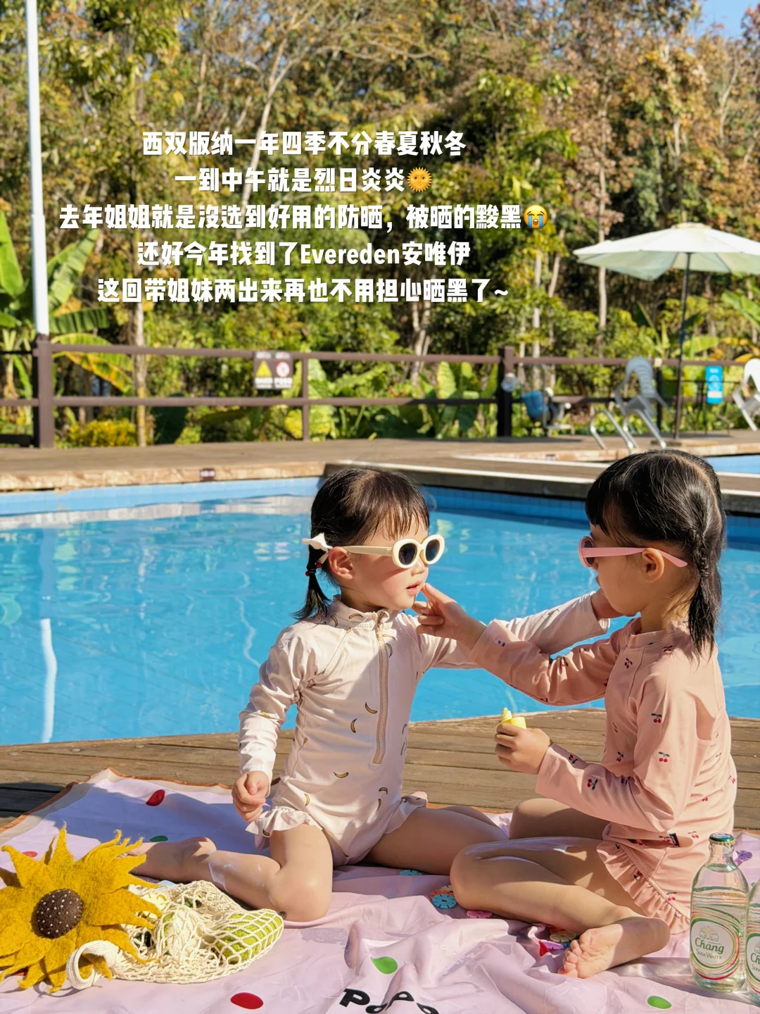 自从来了西双版纳以后就发现这里的🌞太阳真是太毒了!紫外线+闷热湿气双重暴击,之前带我家姐姐出去玩用过好几款防晒,每次疯玩回来还是晒得小脸通红,脖子胳膊晒出分层,原本白嫩的皮肤摸起来都糙糙的😮💨