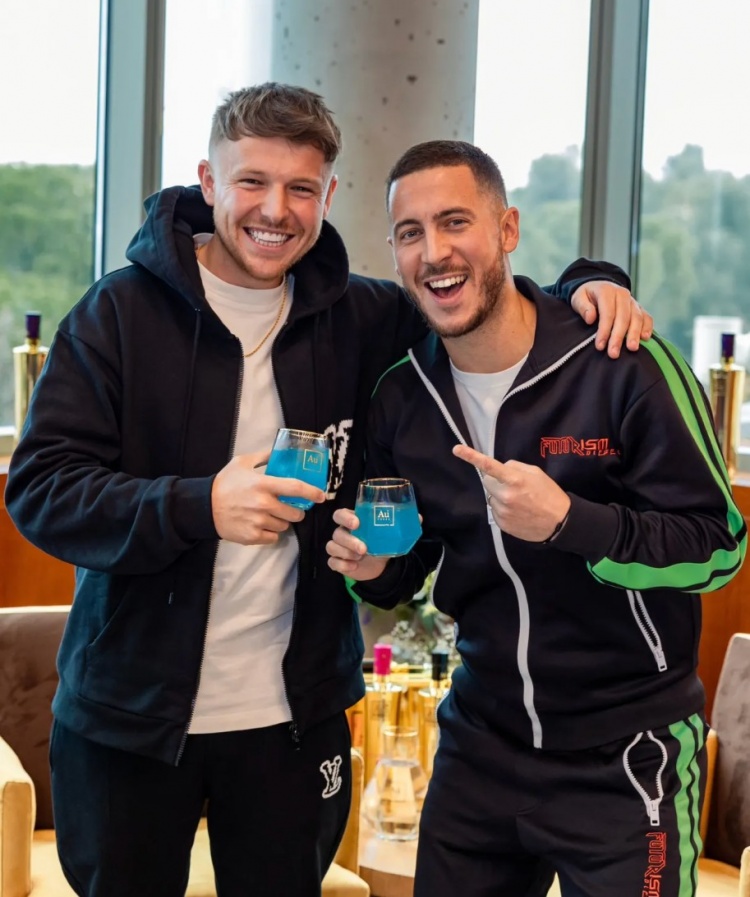 最近,阿扎尔与查理·摩根,即那个在2013年联赛杯半决赛第二回合被他踢倒的球童重聚了。当时,摩根拒绝将球交给切尔西,导致阿扎尔因一时冲动而踢了他并被红牌罚下。如今,摩根已成为一名身价4000万英镑的伏特加企业家。两人友好地合影留念,展示了他们各自的饮品品牌。
