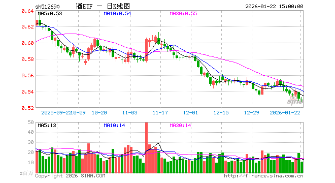 1月22日,酒ETF(512690)跌0.38%,成交额5.66亿元。当日份额增加1.75亿份,最新份额为344.80亿份,近20个交易日份额减少11.54亿份。最新资产净值计算值为182.09亿元。