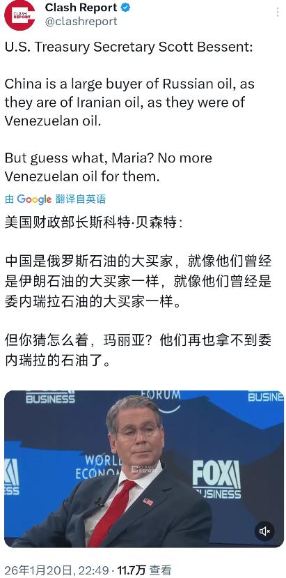 美国财政部长贝森特:“中国是俄罗斯石油的大买家,就像他们曾经是伊朗石油的大买家一样,就像他们曾经是委内瑞拉石油的大买家一样。但你猜怎么着,玛丽亚?他们再也拿不到委内瑞拉的石油了。” 当年咱们从委内瑞拉买石油,那是基于市场需求的正常买卖,后来因为美国在那边死命制裁,委内瑞拉的石油产量直接腰斩,运不出来,咱们自然就没法买,这哪里是他说“拿不到”那么简单,分明是人家那边因为被折腾得没法正常供货,而不是咱们不想买。 现在的局势跟那时候完全不一样,俄罗斯的石油管道铺得四通八达,运油船队在海上跑得欢实,根本不是那种想断就能断的状态。贝森特拿过去的老黄历硬套现在的俄罗斯,显然是低估了咱们跟俄罗斯之间能源合作的韧性和深度。 咱们中国作为世界上最大的能源进口国,买油这种事儿从来都是把饭碗端在自己手里,不可能把希望寄托在任何一家身上,更不会看美国的脸色过日子。 当年从委内瑞拉进口减少,咱们立马就在中东、非洲还有其他地方找到了新的来源,国内的能源供给一点没耽误,现在哪怕俄罗斯这条线真的有风吹草动,咱们手里早就预备好了好几个替补方案,根本不会出现他嘴里那种“没油买”的尴尬局面。 况且,咱们跟俄罗斯的石油交易,很大一部分都是通过本币结算或者易货贸易来完成的,这就绕过了美元支付体系的那些弯弯绕,美国想用金融手段来卡脖子,这招现在越来越不灵了。 俄罗斯被西方制裁了这么久,早就练就了一身应对封锁的本事,他们的石油出口把方向转到了东方,港口吞吐量不仅没降,有的地方还在涨,这足以说明市场需求在那摆着,不是美国财政部长一句话就能抹杀的。 贝森特这番言论,说白了就是想在国际舆论上造势,给咱们扣一顶“资助对手”的帽子,好让咱们在国际谈判桌上被动,甚至想让咱们主动切断跟俄罗斯的正常贸易往来,这种如意算盘打得未免太响了。 咱们在国际市场上做生意,讲究的是个互利共赢和契约精神,只要符合咱们自己的利益,只要价格合适、质量达标,管他是哪里的油,咱们都会买,这轮不到别人来教咱们怎么做。 美国现在自己国内通胀高企,债务上限问题像定时炸弹一样悬在头顶,贝森特不好好去管他们家的烂摊子,反而把精力花在操心咱们买谁家的油上,这心思用得实在有点偏。 能源安全是国家的命脉,咱们在这上面下的功夫比谁都深,从战略储备到进口渠道多元化,每一步都走得稳稳当当,绝不是靠几句恐吓就能让咱们改变战略方向的。 再说了,全球石油市场是个大池子,俄罗斯这么大个供应源,如果真的被强行从市场上切掉,那国际油价还不得飞上天,到时候遭殃的不仅仅是咱们,美国自己也得跟着喝一壶,到时候他们的老百姓去加油站加不起油,贝森特这个财长怕是位置更难坐。 他之所以拿委内瑞拉做比较,无非是想证明美国有“前科”也有能力切断供应,想以此给咱们制造心理压力,但他忘了,现在的中国经济体量和影响力,早就不是当年的吴下阿蒙,咱们手里有的是牌应对这种外部施压。 俄罗斯的石油通过陆路管道直接输送到咱们国内,这种物理连接是海上的制裁船队截不断、拦不住的,哪怕海运有点风吹草动,这几条大管道就足以保证咱们的工业机器正常运转。 贝森特这种威胁,听着吓人,实则暴露了美国现在对于掌控全球能源局面越来越力不从心的焦虑,他们只能靠嘴炮来维持那种虚幻的优越感。 咱们在能源外交上这些年走得可谓是风生水起,跟产油国的关系都处得不错,沙特、伊朗都跟咱们有深度的合作,这哪是一个美国财长能撼动的格局。 他这番话与其说是说给咱们听的,不如说是说给美国国内那些鹰派政客听的,意在展示他对华强硬的姿态,好为自己在华盛顿的政治博弈中加分,但这牺牲的是事实和理智。 国际大宗商品交易,讲究的是个“你情我愿”,俄罗斯有油要卖,咱们有需求要买,这是最基本的市场逻辑,不是美国几句政治口号就能扭曲的。 贝森特如果想通过这种方式逼咱们就范,那他显然是打错了算盘,咱们不吃这一套,也不会因为这种外部的噪音就改变既定的能源战略。 看看现在全球能源版图的变化,东方的需求正在成为主导力量,西方的那套制裁大棒,挥舞起来越来越费力,效果也是越来越差。 他提的那句“再也拿不到委内瑞拉的石油”,背后其实隐藏着美国对拉美地区霸权的滥用,现在他们想把这套霸权逻辑复制到咱们身上,实在是有点刻舟求剑了。 咱们现在要做的就是稳住阵脚,按部就班地推进咱们的能源采购计划,该买俄罗斯的买俄罗斯的,该买中东的买中东的,把发展节奏掌握在自己手里。 信源:路透社