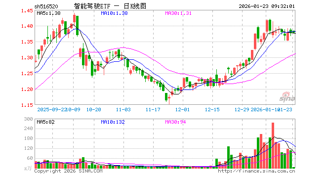 1月23日,智能驾驶ETF(516520)开盘涨0.58%,报1.383元。智能驾驶ETF(516520)重仓股方面,拓普集团开盘涨0.56%,豪威集团涨0.01%,科大讯飞涨0.96%,比亚迪涨0.13%,长安汽车涨0.00%,赛力斯跌0.06%,芯原股份跌1.51%,立讯精密涨0.39%,德赛西威涨0.55%,北京君正跌2.12%。