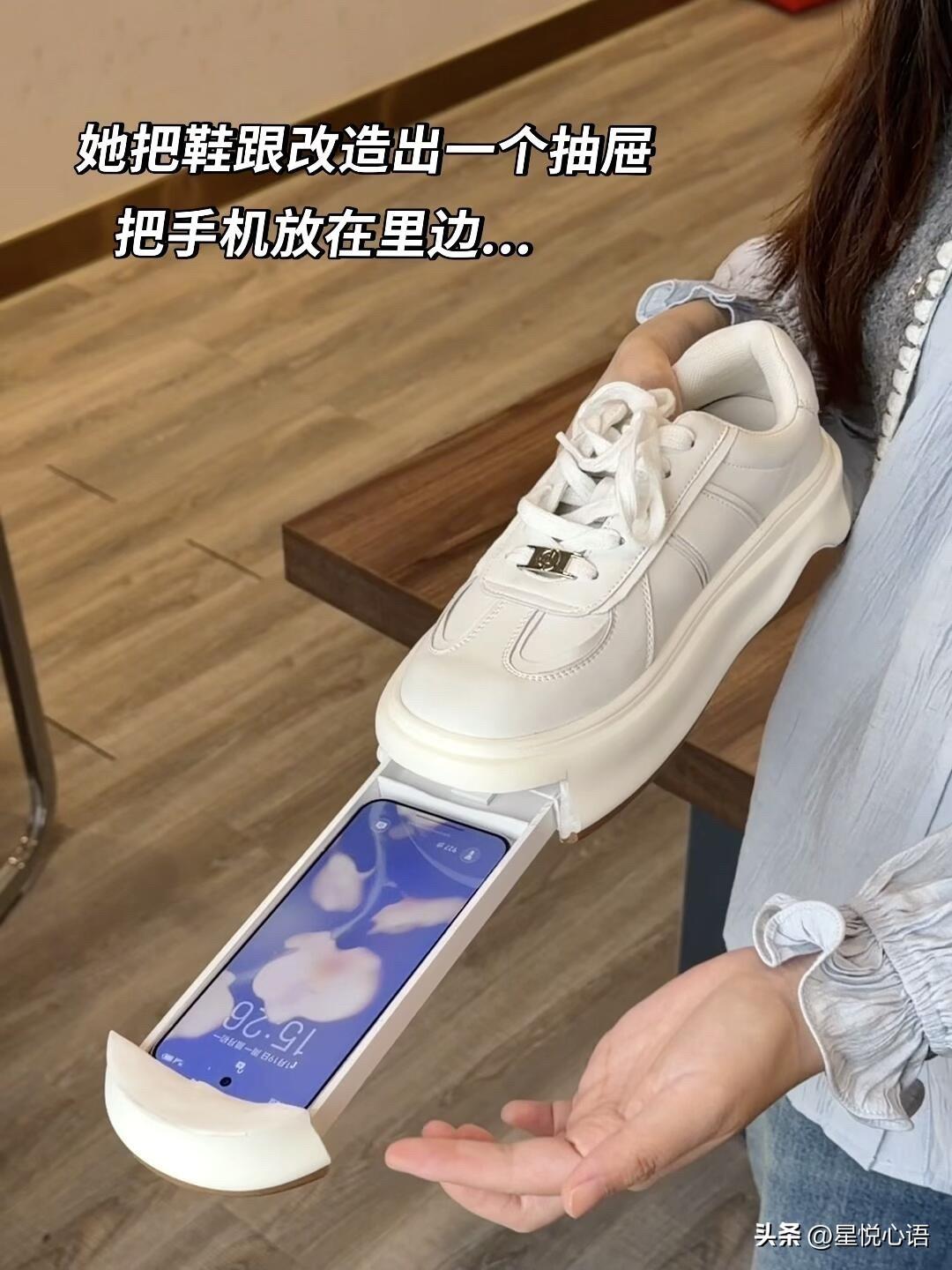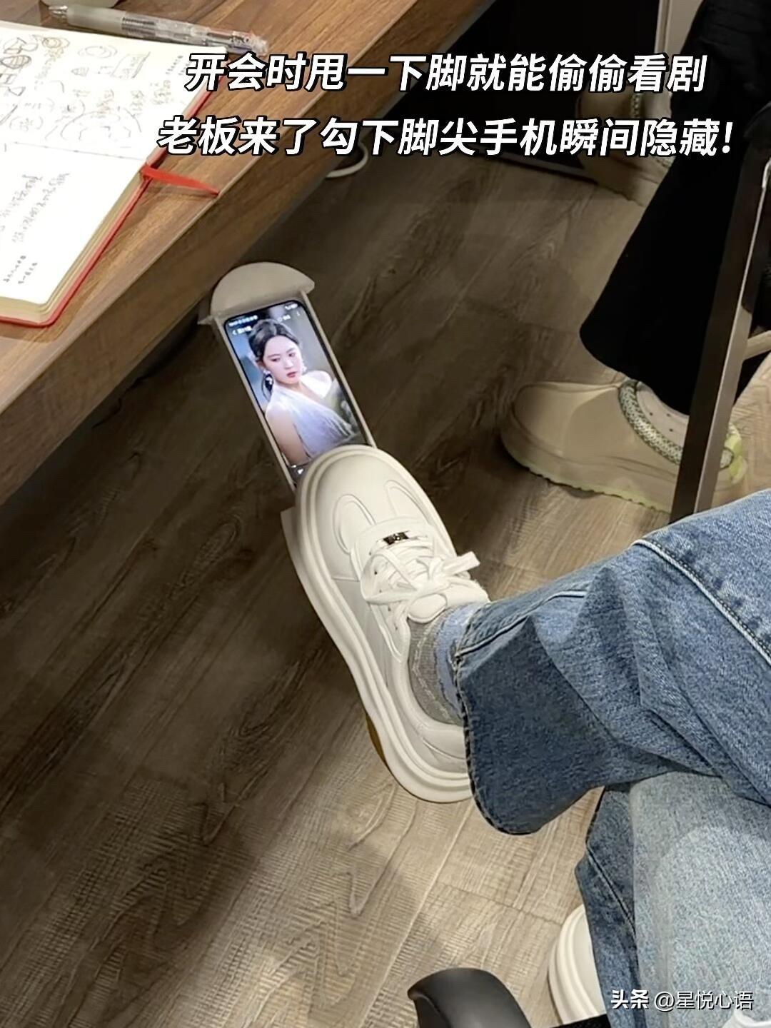同事的开会摸鱼操作,我看呆了! 公司天天开无效大会,全程听着没营养的话,坐得我屁股发麻。 结果旁边同事直接开卷,把鞋跟改成小抽屉,手机往里面一塞。 开会时翘着二郎腿,甩下脚就能偷偷看剧,老板过来一勾脚尖,手机瞬间藏好,神不知鬼不觉! 不得不说,打工人的摸鱼智慧真的牛,我已经蠢蠢欲动想冲同款了,摸鱼追剧两不误~