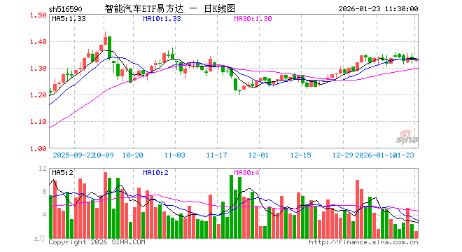 智能汽车ETF易方达(516590)涨0.38%,半日成交额158.76万元