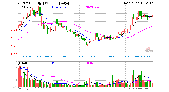 1月23日,截止午间收盘,智能汽车ETF(159889)涨0.59%,报1.186元,成交额303.01万元。智能汽车ETF(159889)重仓股方面,拓普集团截止午盘涨1.05%,豪威集团跌0.25%,科大讯飞涨0.98%,比亚迪跌0.49%,长安汽车涨0.09%,赛力斯跌0.09%,芯原股份跌1.50%,立讯精密跌2.04%,北京君正跌3.49%,德赛西威涨1.23%。