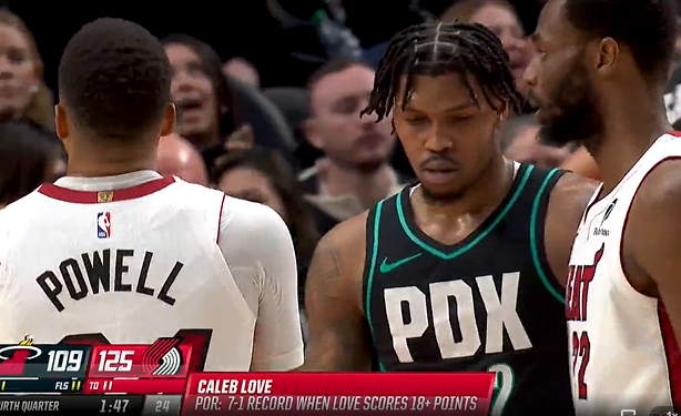 本赛季当凯勒布-乐福砍下18分以上时,开拓者取得7胜1负。
