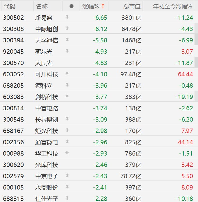 格隆汇1月23日|A股市场CPO概念股集体下挫,其中,新易盛、中际旭创跌超6%,天孚通信跌超5%,蘅东光、太辰光、可川科技跌超4%,德科立、剑桥科技、中富电路、长芯博创跌超3%。