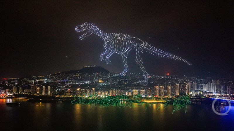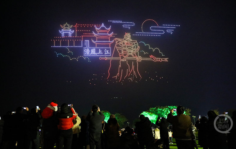 夜空为幕,光作画笔。1月22日晚,重庆云阳环湖绿道月光草坪公园,2000架无人机于长江畔腾空,上演了一场名为“新韵重庆天生云阳”的大型灯光秀。
