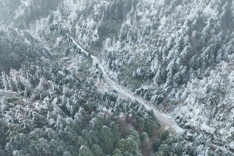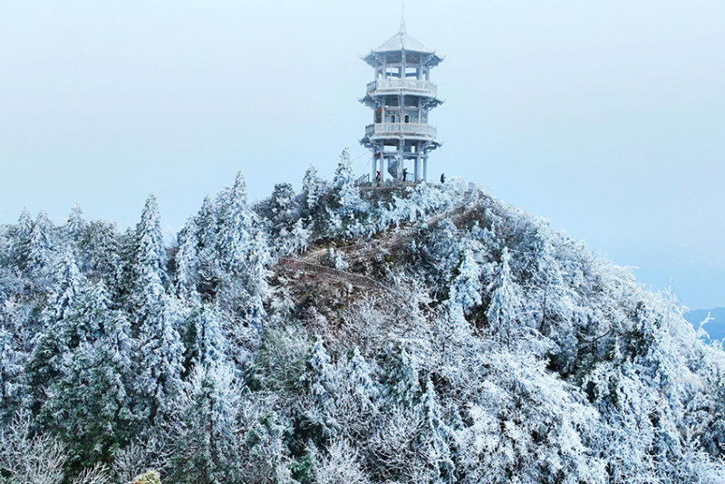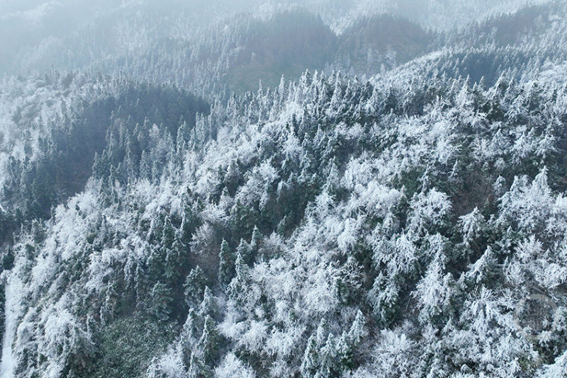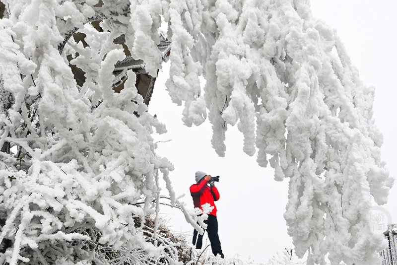 1月23日,连日来的低温雨雪天气,为重庆市酉阳土家族苗族自治县的清华林场披上了一层梦幻的冰雪盛装。漫山树木银装素裹,琼枝玉树,宛如现实版的冬日童话世界,吸引了不少游客和摄影爱好者前来打卡。