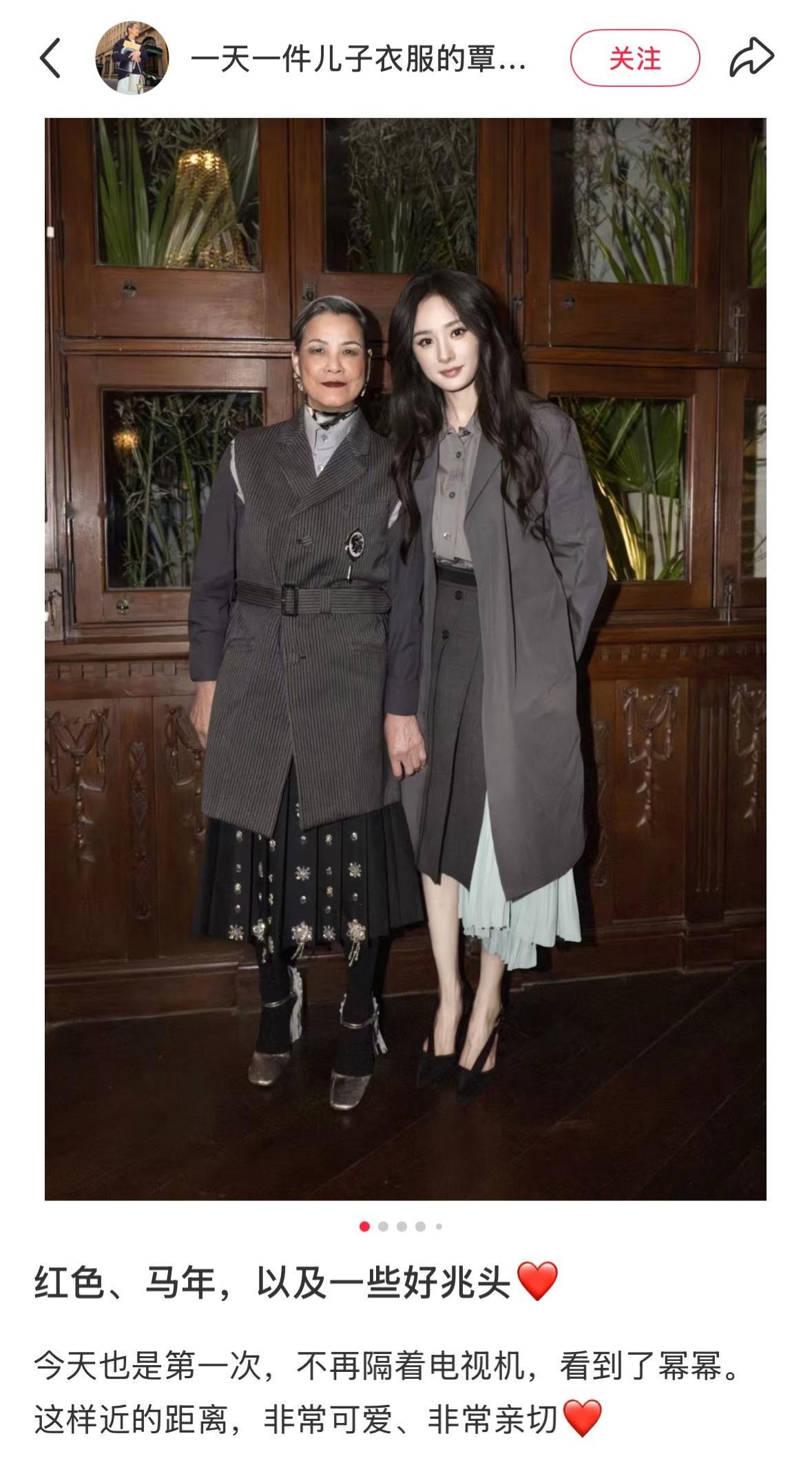 杨幂 杨幂和覃阿姨的正面合照分享~覃惠兰阿姨说:“今天也是第一次,不再隔着电视机,看到了幂幂。这样近的距离,非常可爱、非常亲切❤️” 小幂歪歪头合照好贴心~
