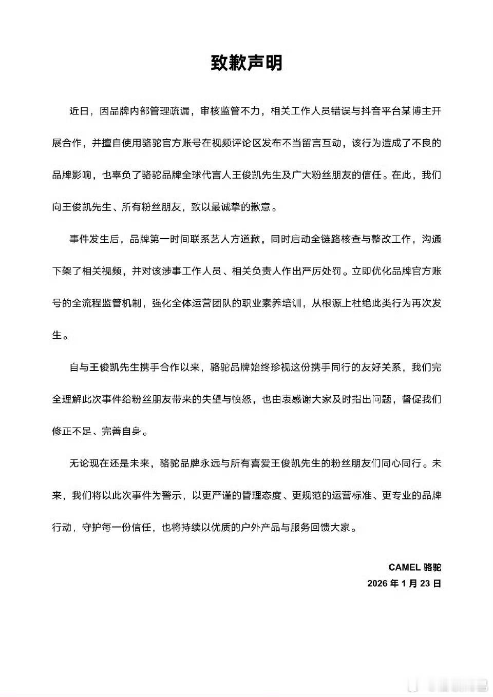 骆驼向王俊凯致歉有代言人还找模仿王俊凯的推广,哪个神人想出来的营销……一点也不尊