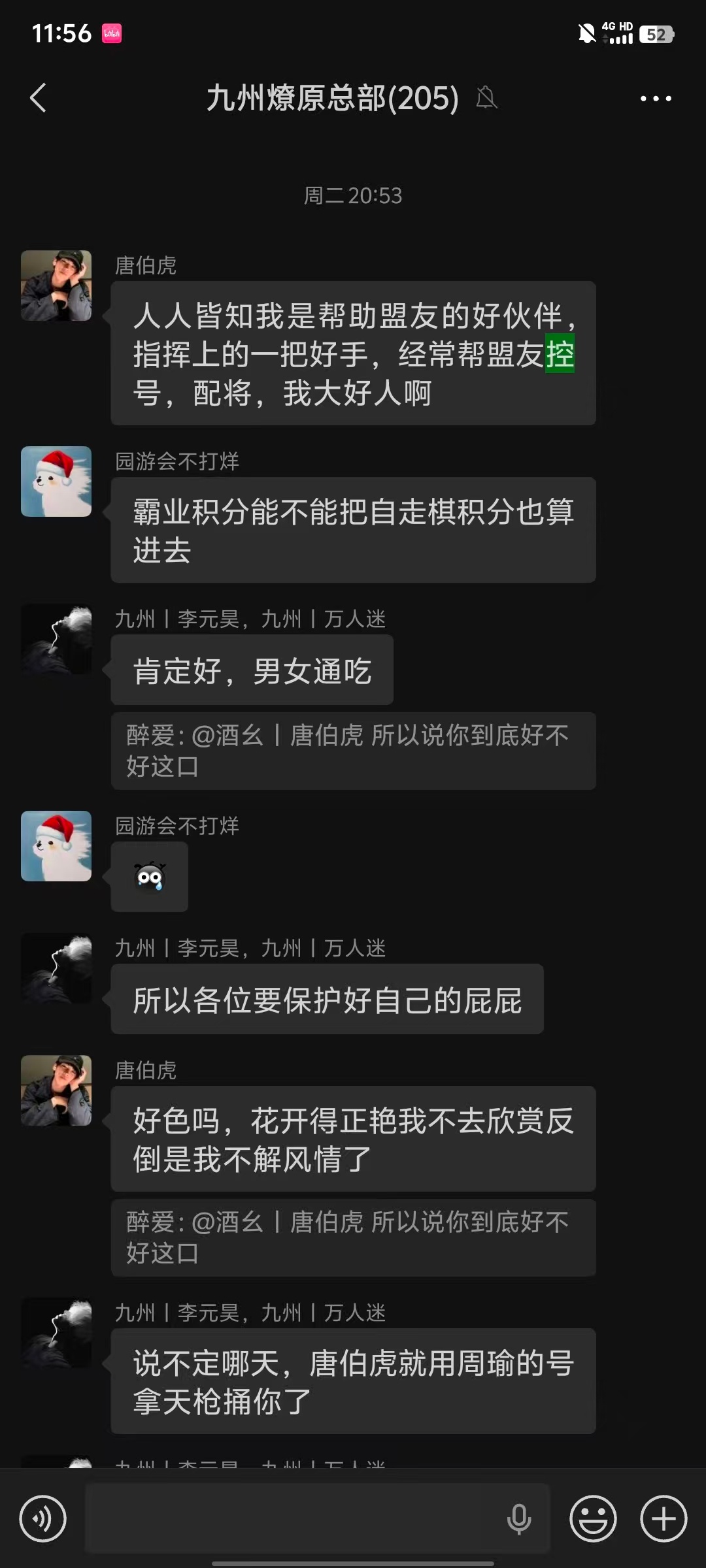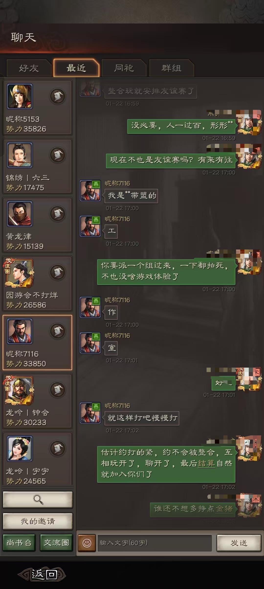 我在玩三国志战略版,在6059服。虽然我很喜欢玩这个游戏,但是这个游戏存在着很大的不公平,就是工作室团控的问题。该公司自诩在打击团控,但是实际上,已经形成根深蒂固的产业链。一两个工作室就可以做局,赛季开始就可以分配割据和霸业名额。对于普通的玩家,要么低头认错下野加入对方,要么只能被工作室集中力量打压。关于工作室的问题,大家一直在投诉。但如同石沉大海没有任何的回馈。我的很多游戏朋友,都很年轻,心理感到非常的沮丧,在生活中工作中就要低头,在游戏中被工作室打压。我在此被迫来挂一下控号的游戏工作室,既然三国志战略版的管理方不作为,我实在没有办法。我们能发现的,估计有大概5个组,不下60个号。都是由一个游戏名为 酒幺|唐伯虎来负责控制。涉及的分组有昵称组,酒幺组,龙呤组(龙呤组共有3组以上)他们通常会在任意时间段突然集结(普通玩家通常会约定固定的在休息时间),几十个号分秒不差的拉线行动。图片解读:图一,昵称7116承认自己是工作室图二,酒幺|唐伯虎承认自己控号。并招揽控号。图6,10点43分集结,没有一个正常上班的人这个时候能够统一行动。图9同时集结和行动。各个号神奇的一致。一般集结普通玩家都是整点,不会这种任意时间段突然集结。很遗憾必须通过挂出证据来提醒该公司认真打击游戏外挂和团控行为。来维护广大玩家的公平权益。三国志战略版