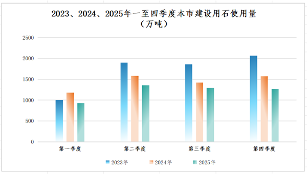 图12023、2024、2025年一至四季度上海市建设用石使用量