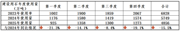 表22023-2025年建设用石使用量同比情况表