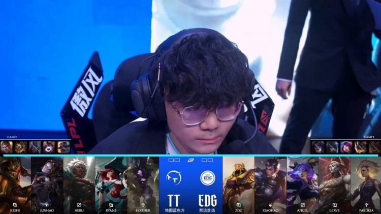 第一局前期Junhao皇子上路草丛反蹲,配合Keshi安蓓萨逮捕贪线的Zdz亚恒一血。随后Junhao皇子河道1v2,等队友到位送Ryan3女枪双杀,紧接着小龙团,TT付出两人代价拿到小龙。