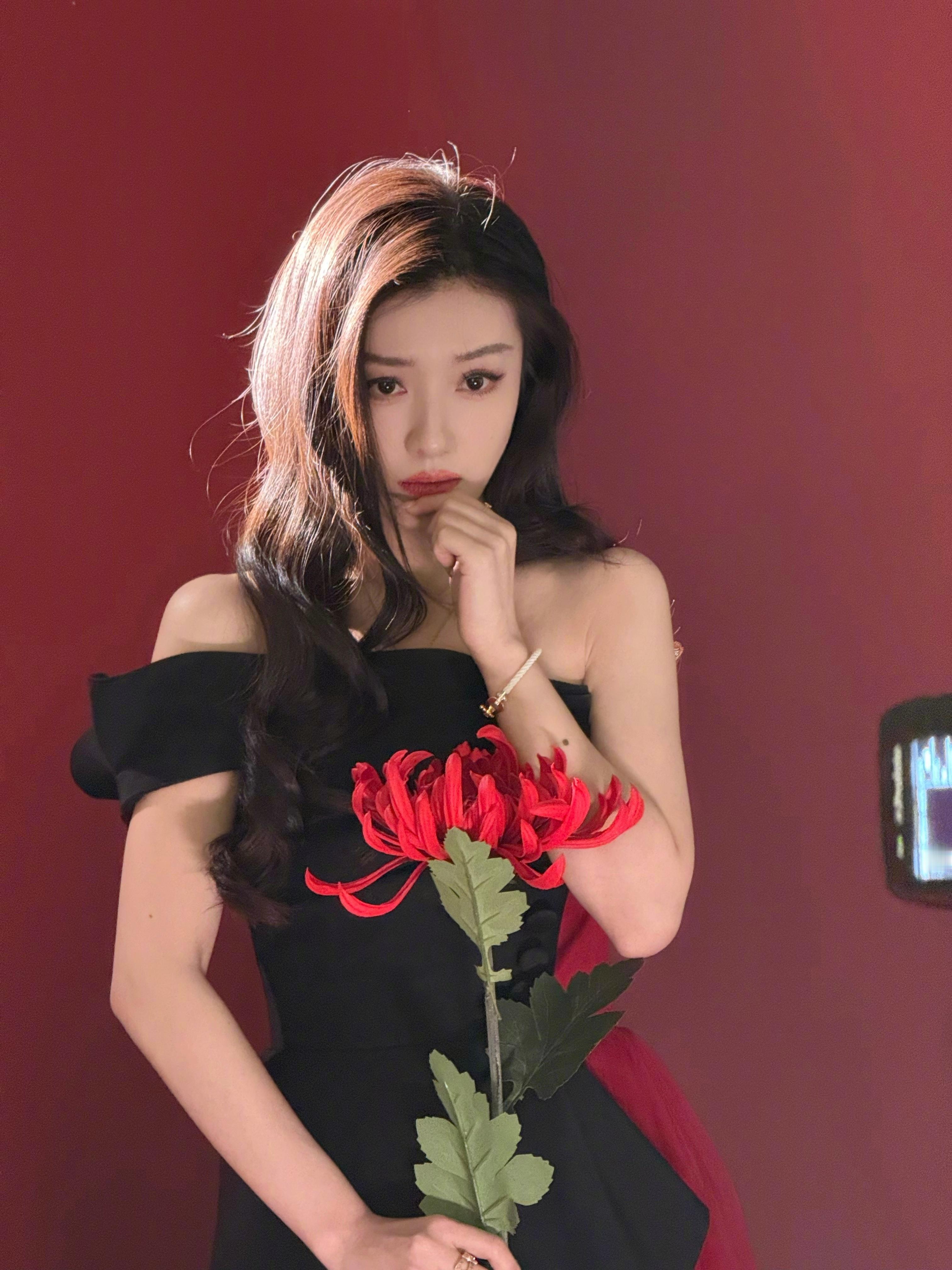 佟丽娅抹胸透视黑裙性感御姐风