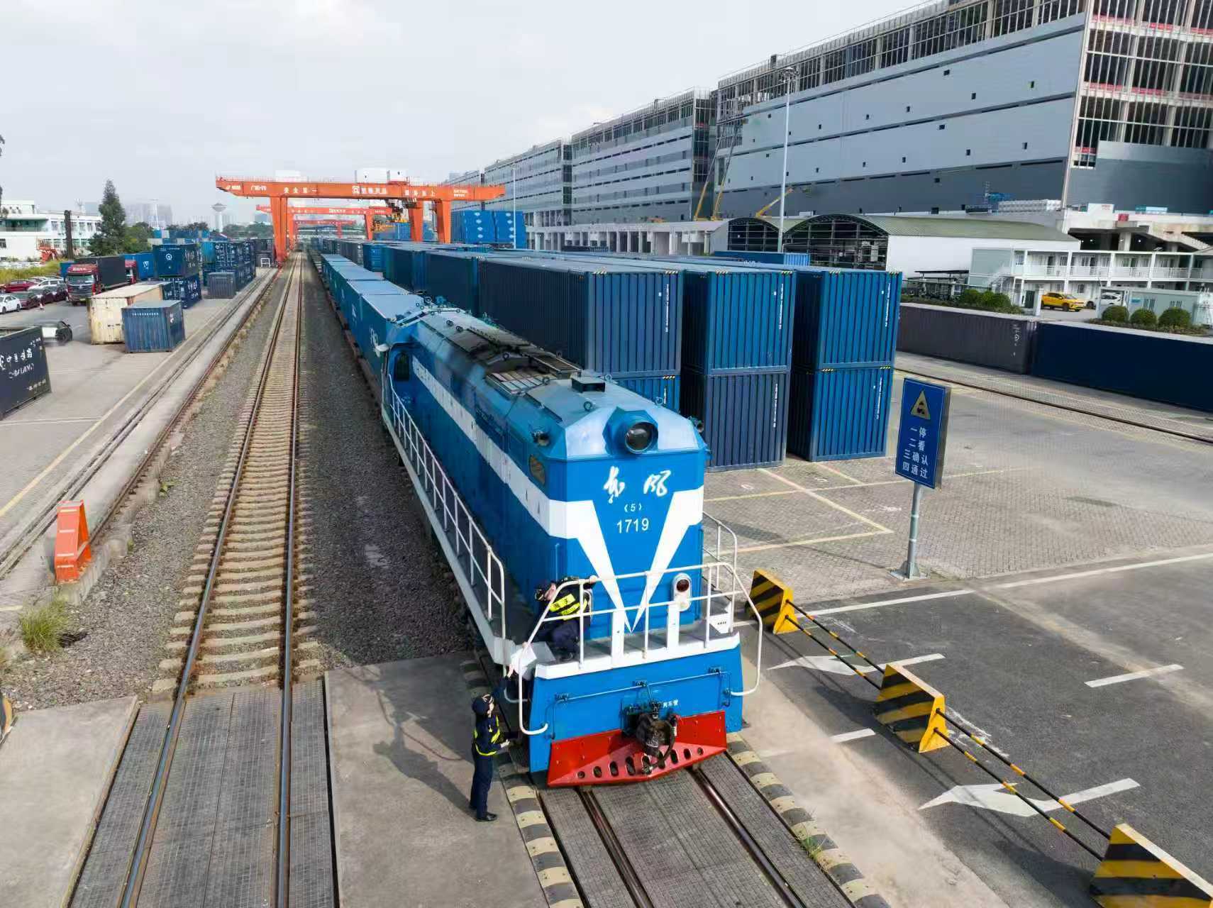笋岗海关关员在监管中欧班列货物。