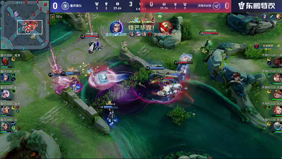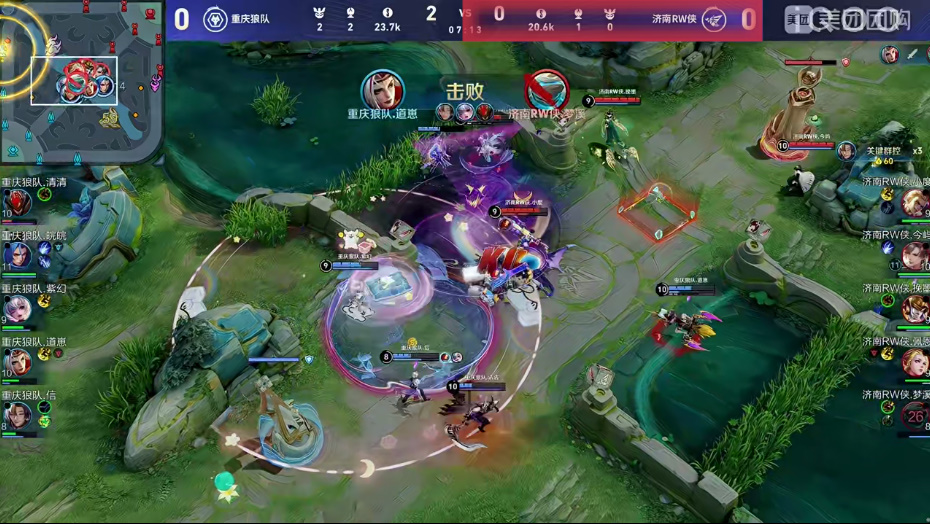清清白起大闪空掉被反打,信空空儿大招卷到三人戈娅侧面输出收下盾山