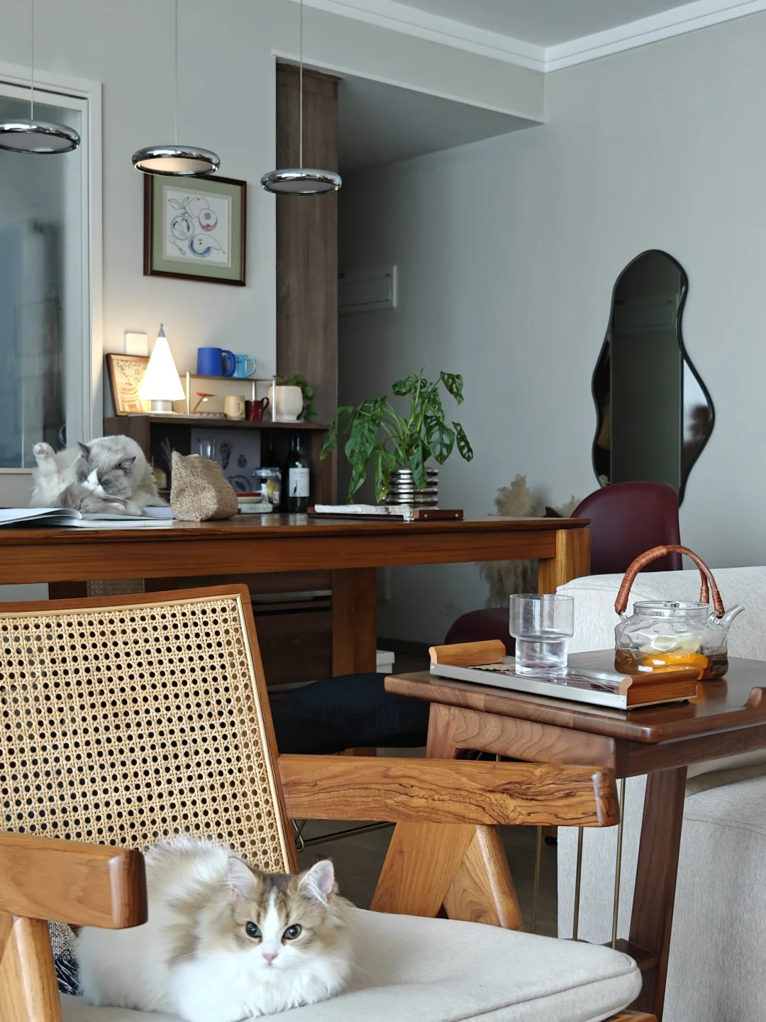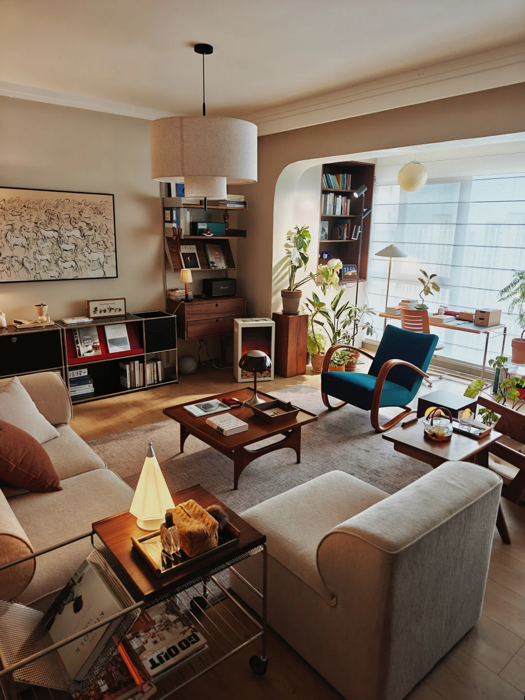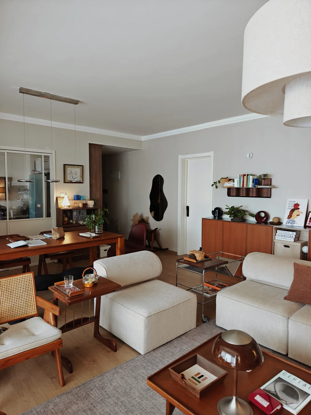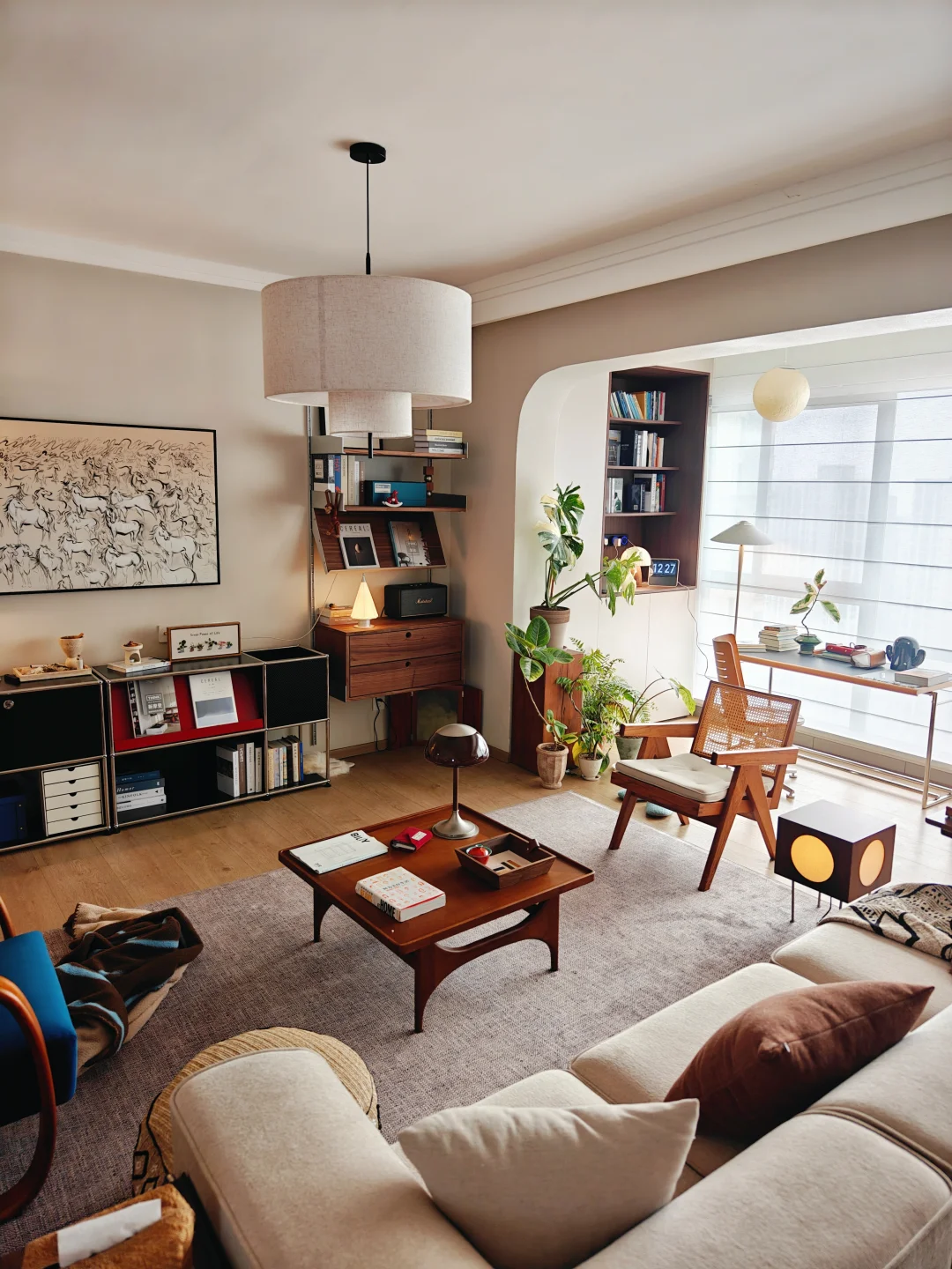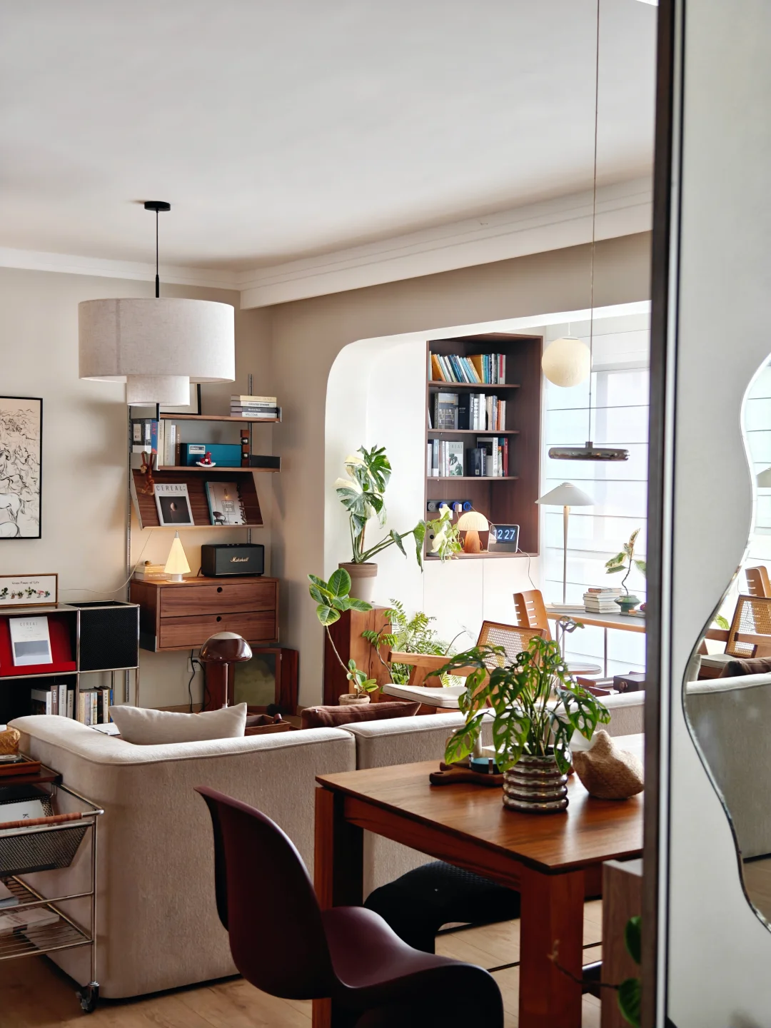 我家客厅没风格,只有脾气。 它必须能让我四仰八叉,也能让猫飞天遁地。 模块沙发想怎么摆就怎么摆。 书就堆在随手能够着的地上。 阳光挪到哪儿,我们就跟到哪儿坐。 植物自由生长,枯了也就枯了,春天还会发新芽。挂了就重新买。 这里不招待“客人”,只款待自己。 音乐可以外放,沉默也理直气壮。 一个被生活痕迹填满的客厅, 比任何设计杂志里的样板间, 都更接近“自由”的模样。