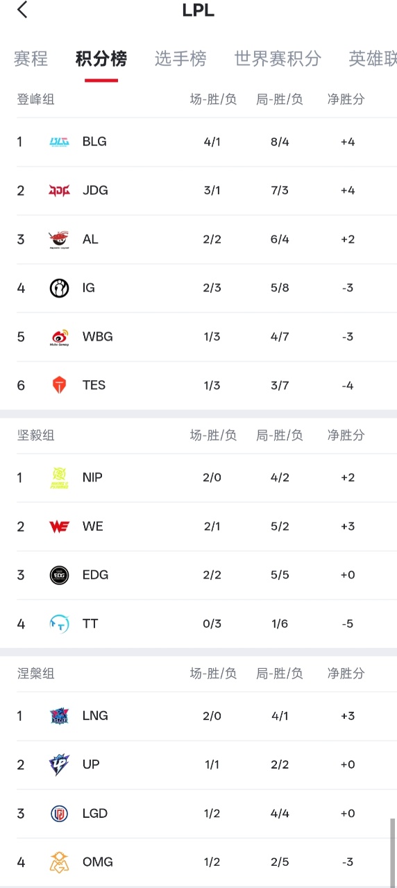 (各位JRs亦可参照文末指引,前往虎扑英雄联盟赛事页查看实时更新的完整LPL战队排名)