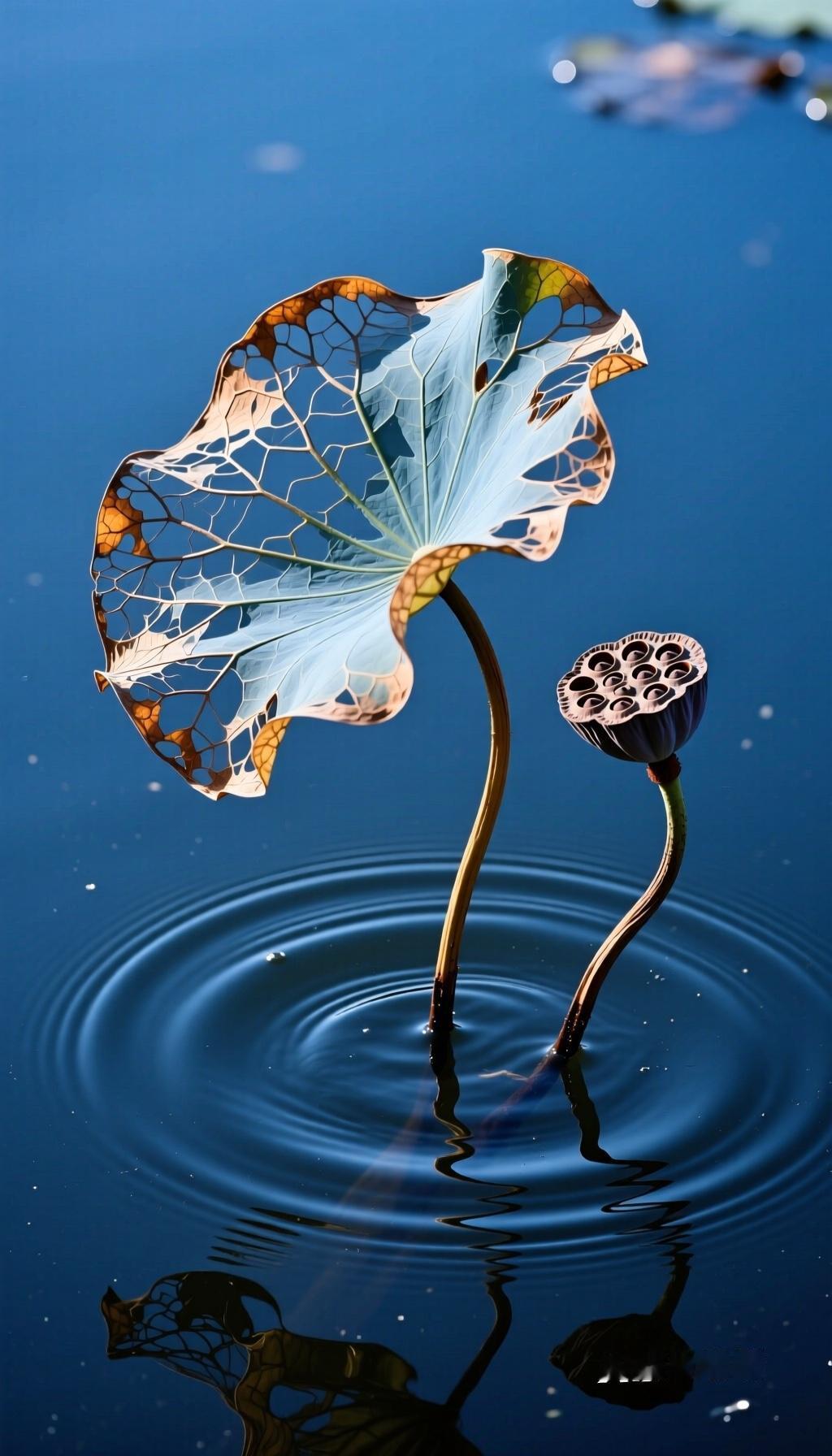 分享喜欢的壁纸蓝夜残荷:油彩深处的时间低语