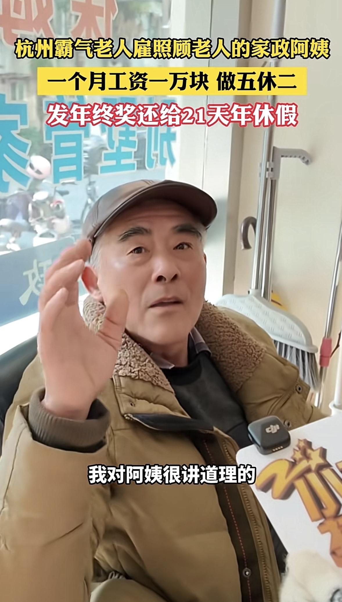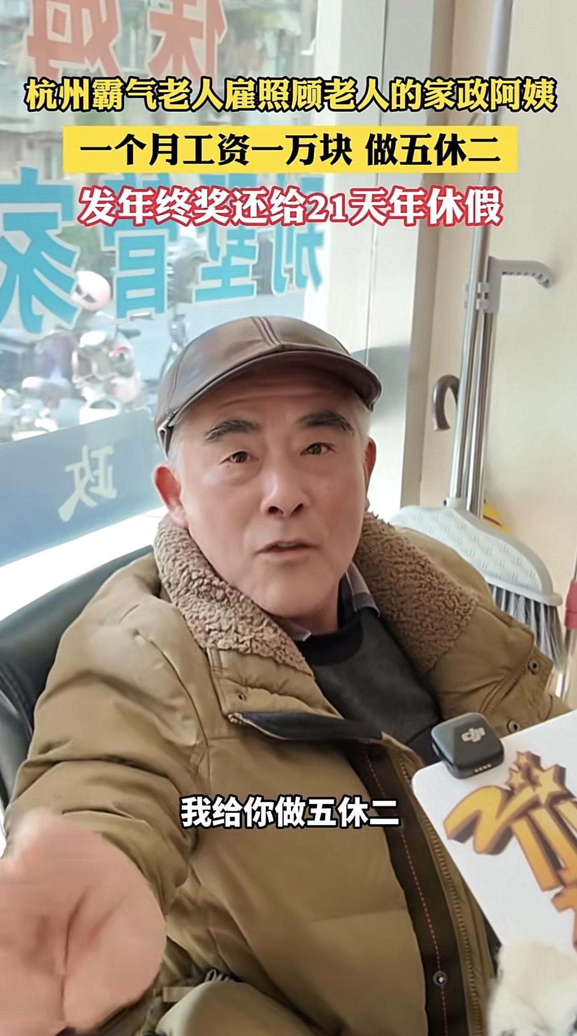 “这大伯火了!”浙江杭州,一大伯开1万2招家政阿姨照顾家中老人,并表示有双休,发