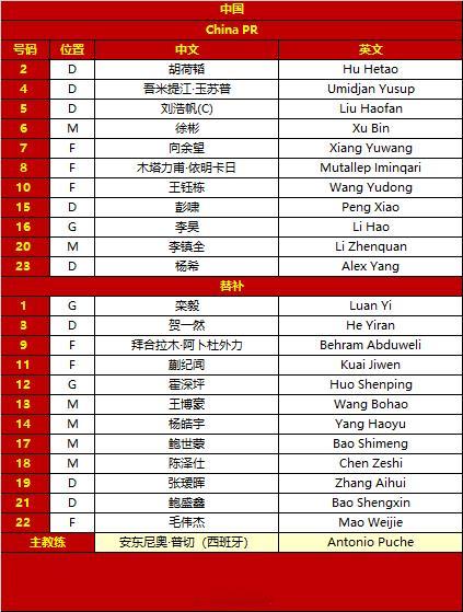 2026亚足联U23亚洲杯 中国vs日本 首发名单 U23国足vs日本U23
