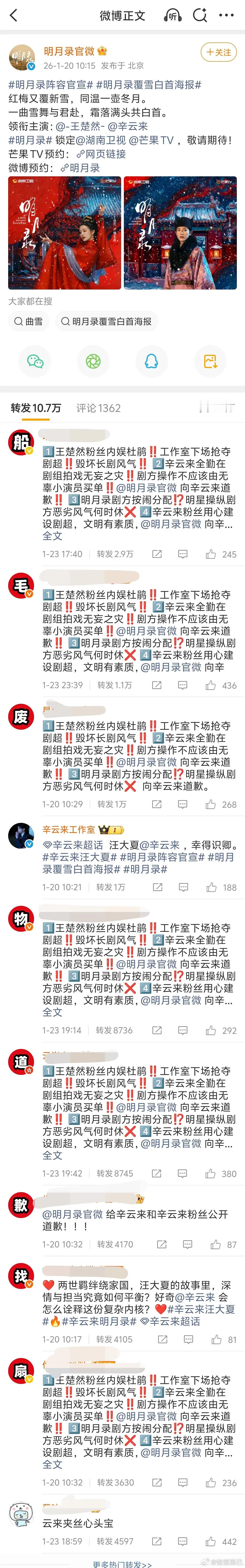 辛云来因为雁回时真的吸了好多粉啊 明月录评论区转发区全是他粉丝