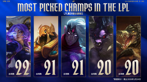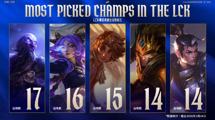 LPL官方发布LCK与LPL出场英雄前五,芸阿娜LPL第一,LCK第二