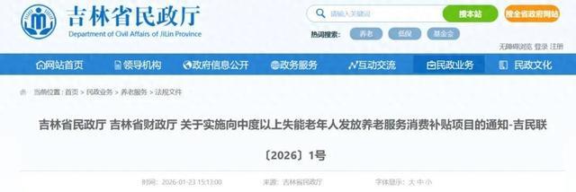 为深入落实积极应对人口老龄化国家战略,加强失能老年人照护服务工作,提升幸福感和获得感,拉动消费需求,提振消费潜力,推动养老服务高质量发展,按照《关于实施向中度以上失能老年人发放养老服务消费补贴项目的通知》(民发〔2025〕37号)和《关于全面启动实施向中度以上失能老年人发放养老服务消费补贴项目的通知》(民办函〔2025〕49号),自2026年1月1日起,实施向中度以上失能老年人发放养老服务消费补贴项目,现就有关事项通知如下: