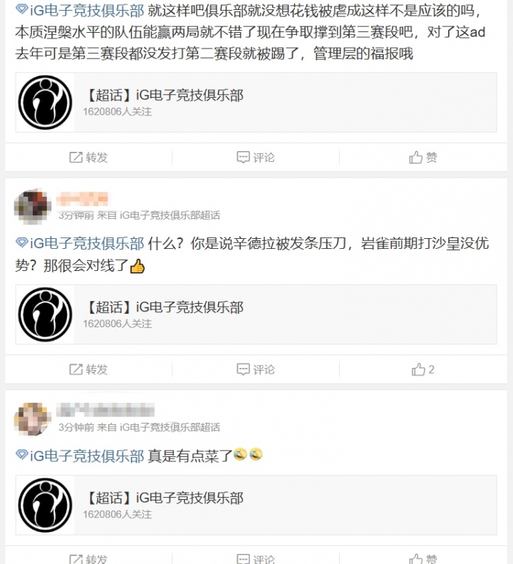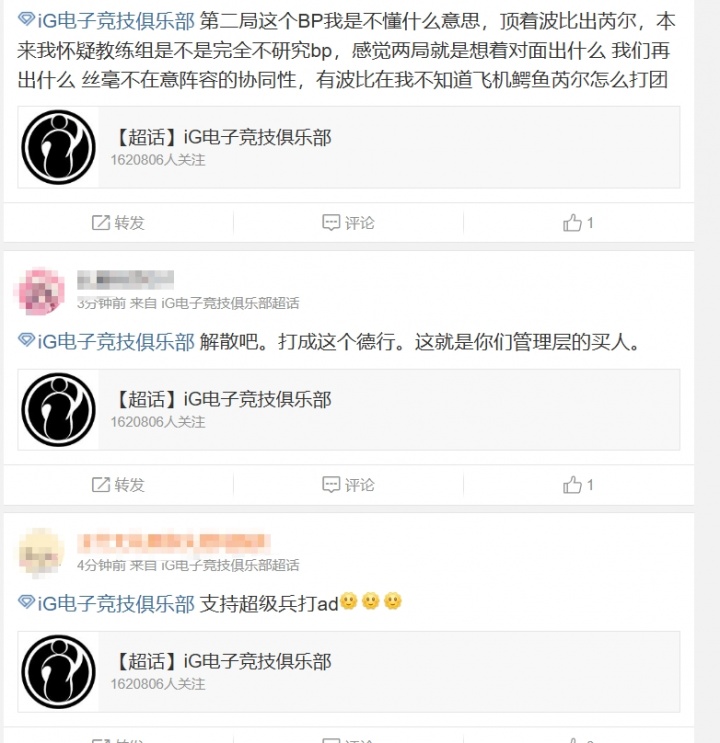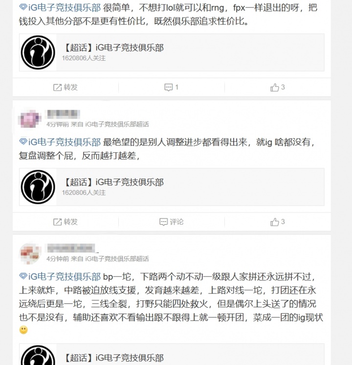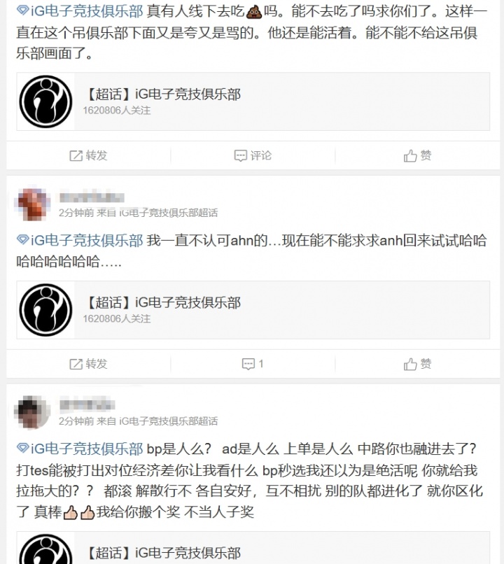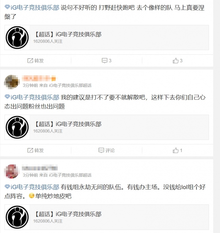 iG超话怒斥队伍被TES横扫:ad是人么 上单是人么 中路你也融进去了?