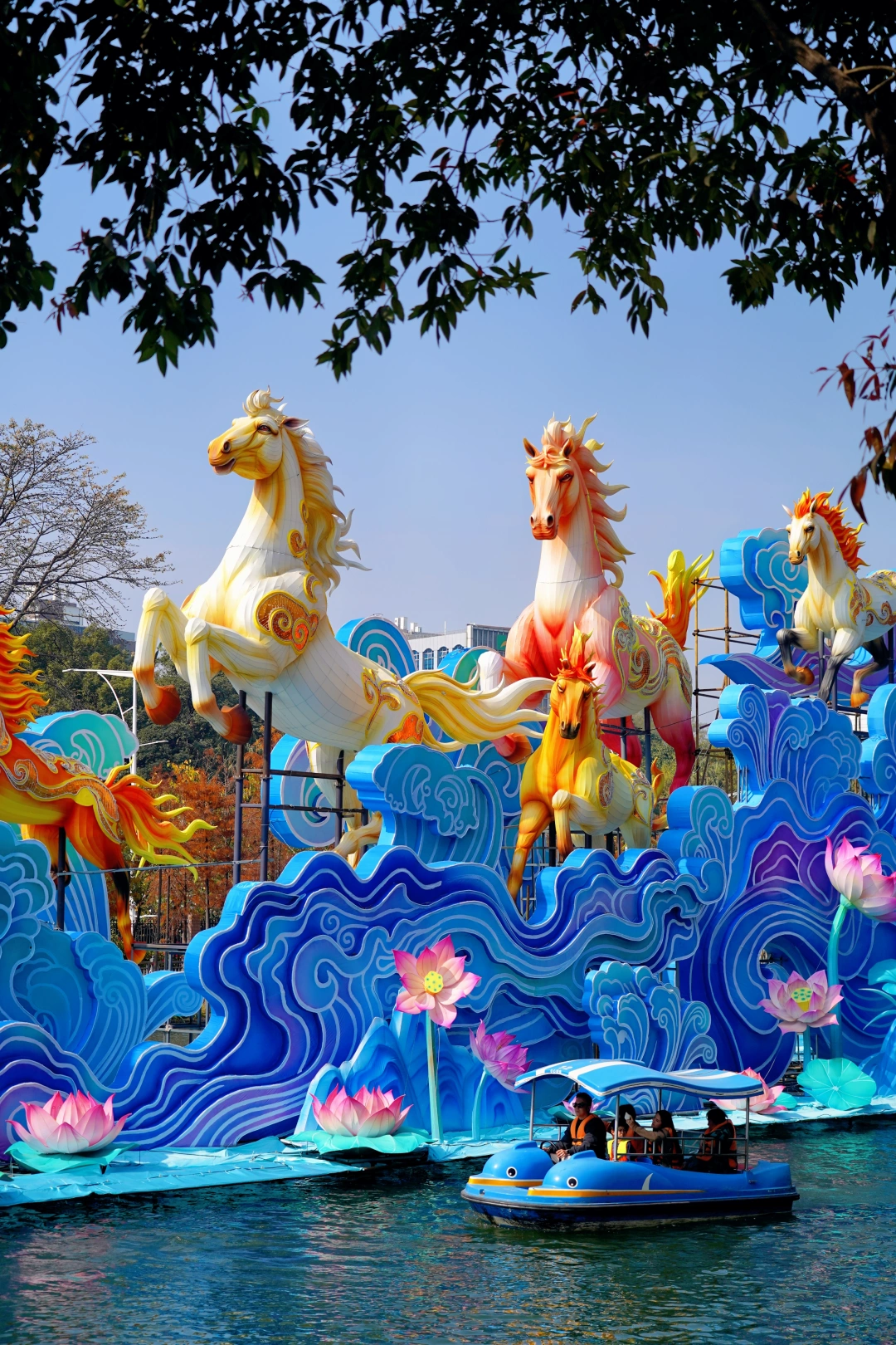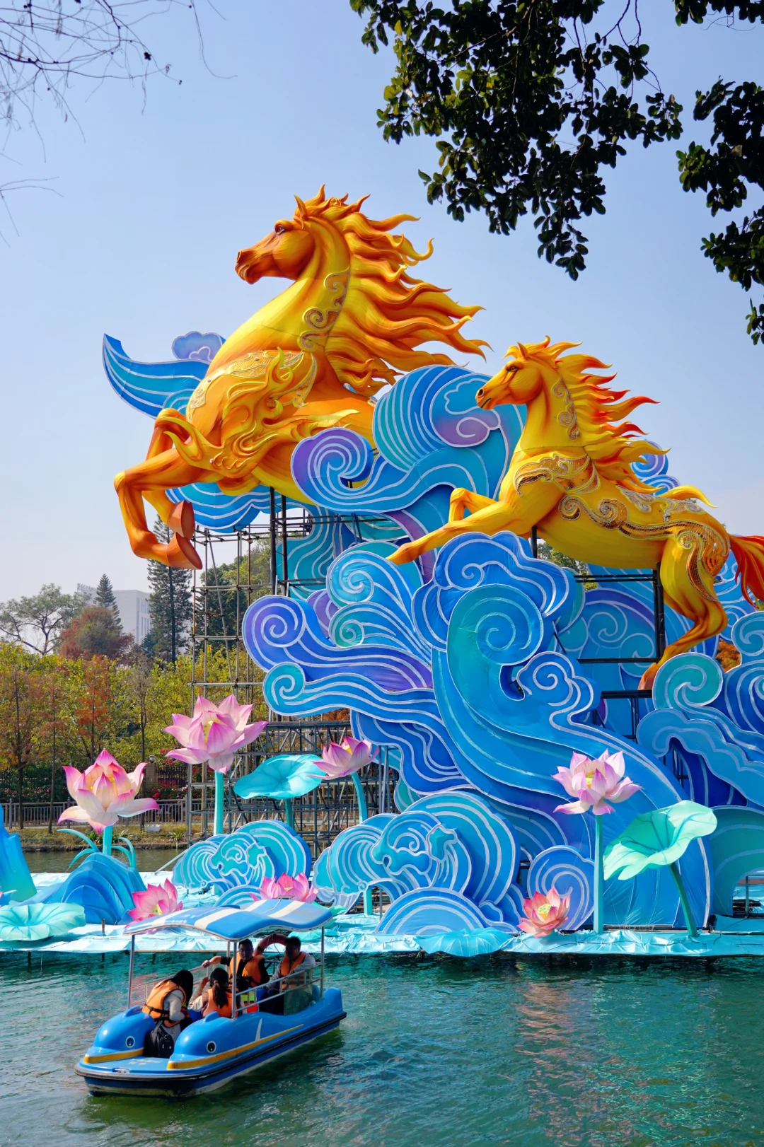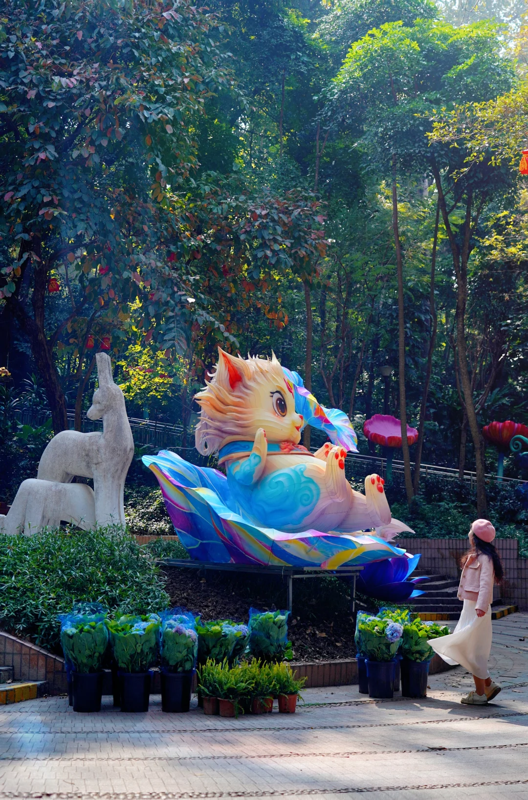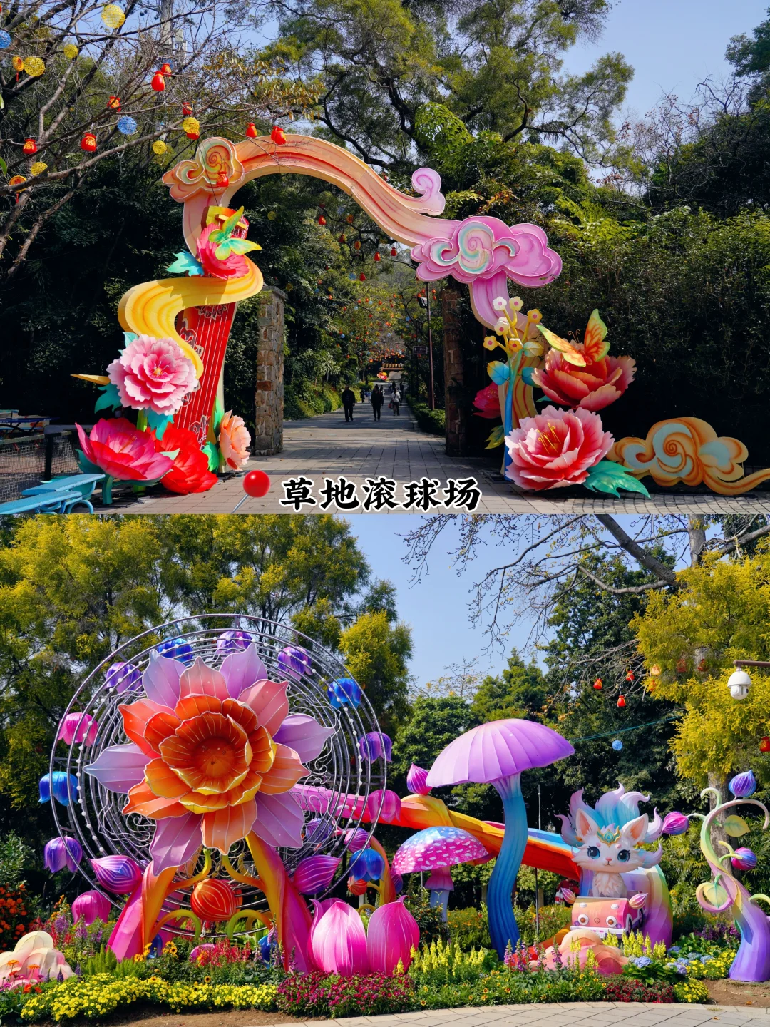 🏮《大吉大利》:11米高的聚宝盆灯组,寓意新年财源滚滚来➠🏮C位灯组《万马奔腾》:百米非遗彩灯“万马奔腾”,气势恢弘,游船划过,波光倒影很是好看➠ 🏮《祥马贺岁》:传统生肖与现代霓虹光影结合,宛如梦幻的时空隧道(沿万马奔腾的河边走到风行牛奶右转上山,往小鹿广场走➠ 夕阳红广场➠ 韩国园➠🏮《爱漾越秀》:60米长的爱心挂件灯带,亮灯后浪漫氛围拉满➠ 回到正门