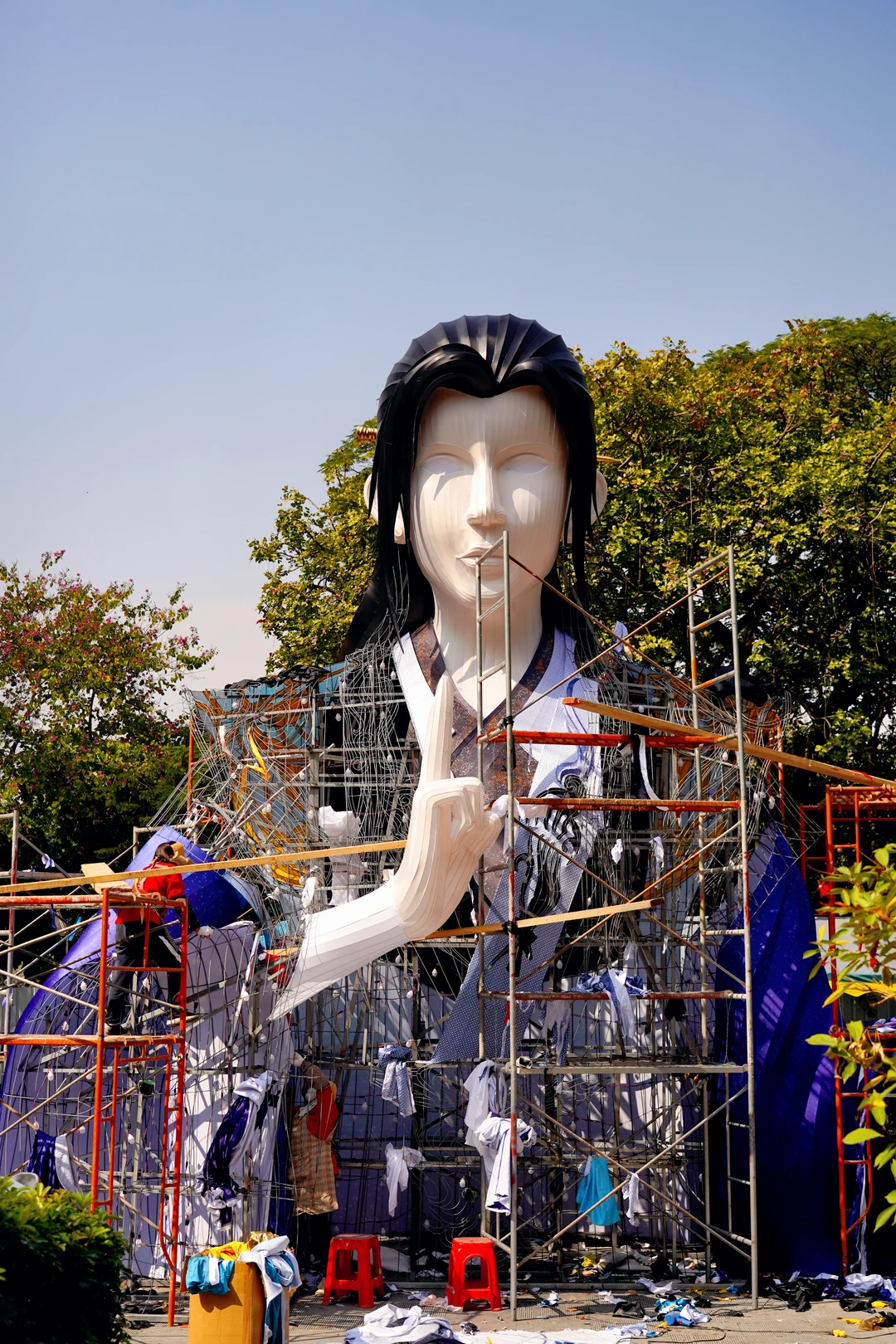 🚇越秀公园地铁站B1出口➠越秀公园正门🏮《雄狮醒阙》:20米高的巨型狮头,据说眼睛会眨动哦!(目前还在组装中,暂时封闭)➠