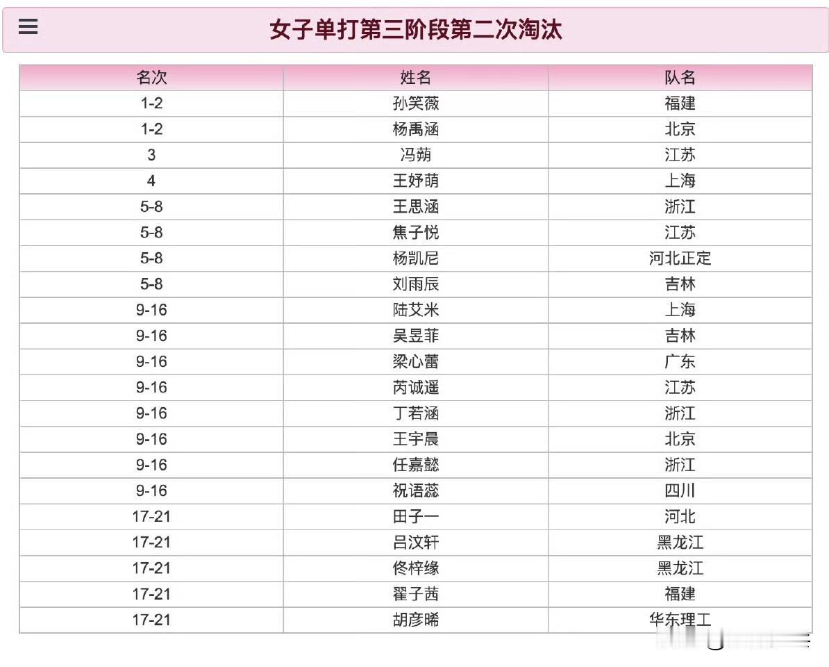 2026年国家青年队入队选拔赛(U15组)丨女子单打第三阶段第二次淘汰赛 孙笑薇(福建)、杨禹涵(北京)、冯蒴(江苏) 2026.1.25