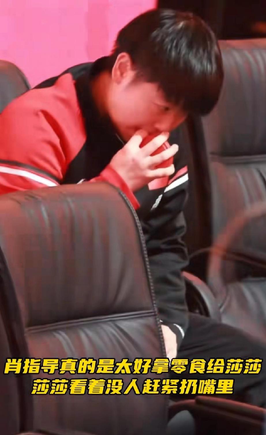 肖指导人怪好来,给莎莎偷偷的递零食,莎莎忍不住拿起来就填嘴里。 场下肖指导看着旁边没人赶紧从包里拿出小零食递给莎莎。 莎莎拿一颗送嘴里。 转脸肖指导又赶紧给旁边的小石头一盒,小石头吃了一颗被大头看到,大头伸过身子也拿一颗扔进嘴里。 肖爹不愧是肖爹,这妥妥的在养孩子呢。