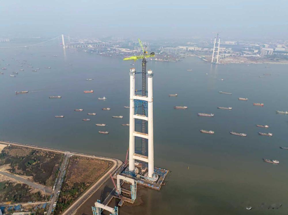 狮子洋通道狮子洋大桥T55节段成功吊装,主塔高度突破300米大关,项目迎来2026年“开门红”。 据了解,狮子洋通道主塔342米高,相当于110层楼高,设6道横梁,单幅塔肢由62个巨型钢壳节段精准拼装。2025年4月2日,狮子洋大桥主塔建设高度突破100米。2025年9月28日,主桥建设高度突破200米。 本次成功吊装的T55节段重达126.6吨,长13.6米、高6米。面对毫米级精度控制、300米高空作业等挑战,建设团队创新采用“工厂化预制+装配化施工+智能化控制”模式:钢壳节段经自动化生产线精密加工后,由2万吨米级超大型塔吊(单次可吊起480辆小轿车至130层楼高)精准对接,创下平均7天吊装一节的行业新速度。“当前塔身对接精度误差不超过3毫米,主塔冲刺342米封顶仅剩最后40多米。”中交二航局T8标副经理张健介绍。