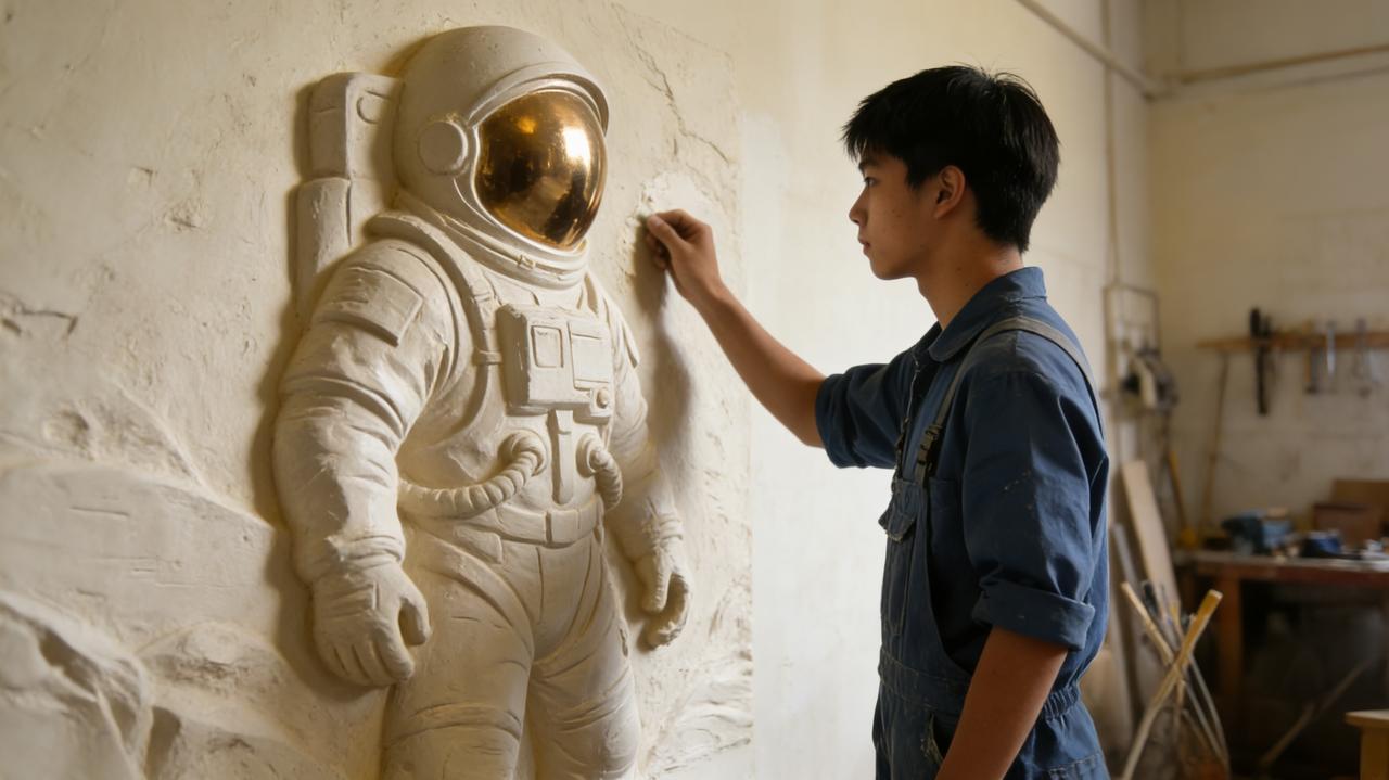 00后美术生“刮腻子”封神!10天复刻宇航员浮雕爆火,年入百万打破职业偏见 两把普通腻子铲,一面空白墙面,两位00后年轻人耗时10天,竟雕琢出栩栩如生的宇航员浮雕——头盔的金属反光细腻逼真,航天服的褶皱层次分明,仿佛下一秒就要挣脱墙面奔赴太空。这段创作视频一经发布,迅速引爆全网,播放量轻松破百万,而这对被网友亲切称为“狼尾兄弟”的匠人,早已凭这门“艺术刮腻子”的手艺,创下年营收超百万的亮眼成绩,让传统装修工种焕发别样光彩。 不同于普通装修工人,“狼尾兄弟”其实是怀揣艺术梦的美术生。当年因现实因素遗憾放弃专业院校深造后,他们没有丢掉画笔与天赋,反而另辟蹊径,将绘画功底融入墙面施工,让不起眼的腻子成为创作主材。从前期精准勾勒线稿、焊接稳固骨架,到中期精雕细琢浮雕轮廓、反复打磨细腻质感,再到后期精心调配色彩、层层上色晕染,每一道工序都暗藏匠心,每一处细节都凝聚着对艺术的极致追求。正是这份专业与专注,让他们在东北工地完成的宇航员浮雕作品,成为全网热议的“网红墙面”,也让更多人见识到浮雕壁画的震撼魅力。 光鲜成绩的背后,是常人难以想象的艰辛付出。为承接各地订单,兄弟俩常年辗转全国,平均每两个月仅有两三天休息时间;赶工期时,每天睡眠不足五小时是常态,甚至曾有人因超负荷工作晕倒在工地。但凭借过硬的技艺与靠谱的口碑,他们的订单越接越多,涵盖家庭个性化墙绘、商场主题装饰、游乐园场景打造等多个领域,收费标准从1万元到20万元不等。仅2025年一年,他们就顺利完成66个项目订单,流水成功突破百万,用汗水兑现了“手艺变现”的可能。 “狼尾兄弟”的走红与成功,不仅打破了大众对“刮腻子”的刻板印象,更击碎了职业鄙视链与学历迷信。他们用实际行动证明,职业没有高低贵贱之分,只要心怀热爱、专注深耕,平凡工种也能绽放耀眼光芒。在短视频平台的助力下,这些新时代手艺人既用铲子刮掉了外界的偏见,也凭借坚守与创新实现了自我价值,更让精益求精的工匠精神在年轻一代中得以传承与延续。正如网友所言:“把手艺做到极致就是艺术,这样的00后匠人,值得所有掌声!”00后刮腻子刮出百万营收 把手艺做成艺术