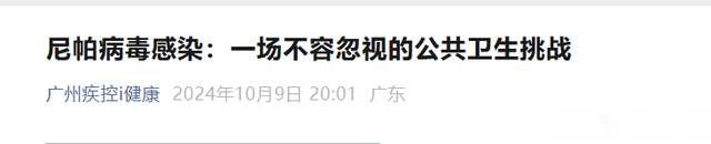 中青报·中青网记者注意到,早在2024年,广州市疾控中心发文,科普尼帕病毒感染的基本知识、传播方式、临床表现、预防措施及当前研究进展,以期提高公众对该疾病的认识与防范意识。