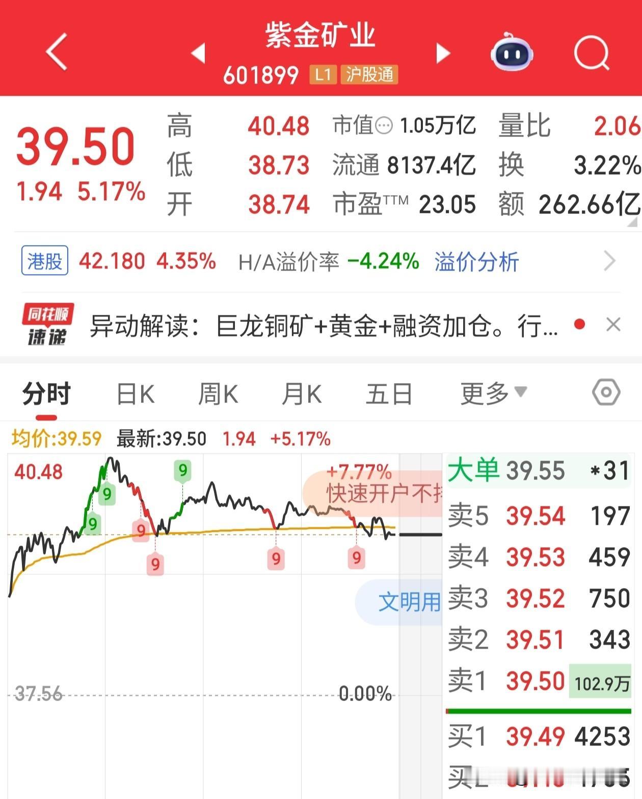 集合竞价多只权重股现巨额压单! 其中紫金矿业压单金额超40亿元,中国平安、江西